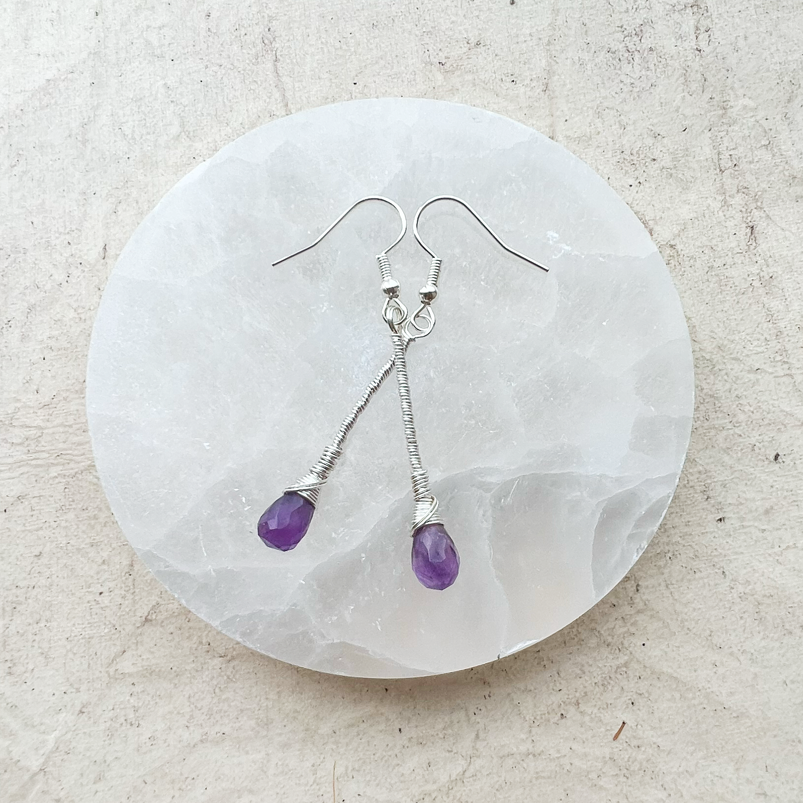 Gorgeous natural Amethyst earrings with delicate silver colour wire work.