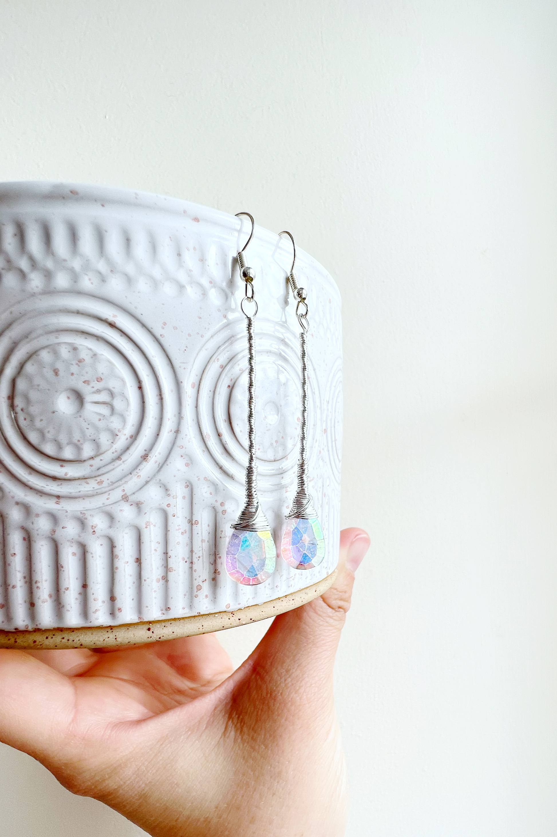 Each wire meticulously hand wrapped making each pair unique.