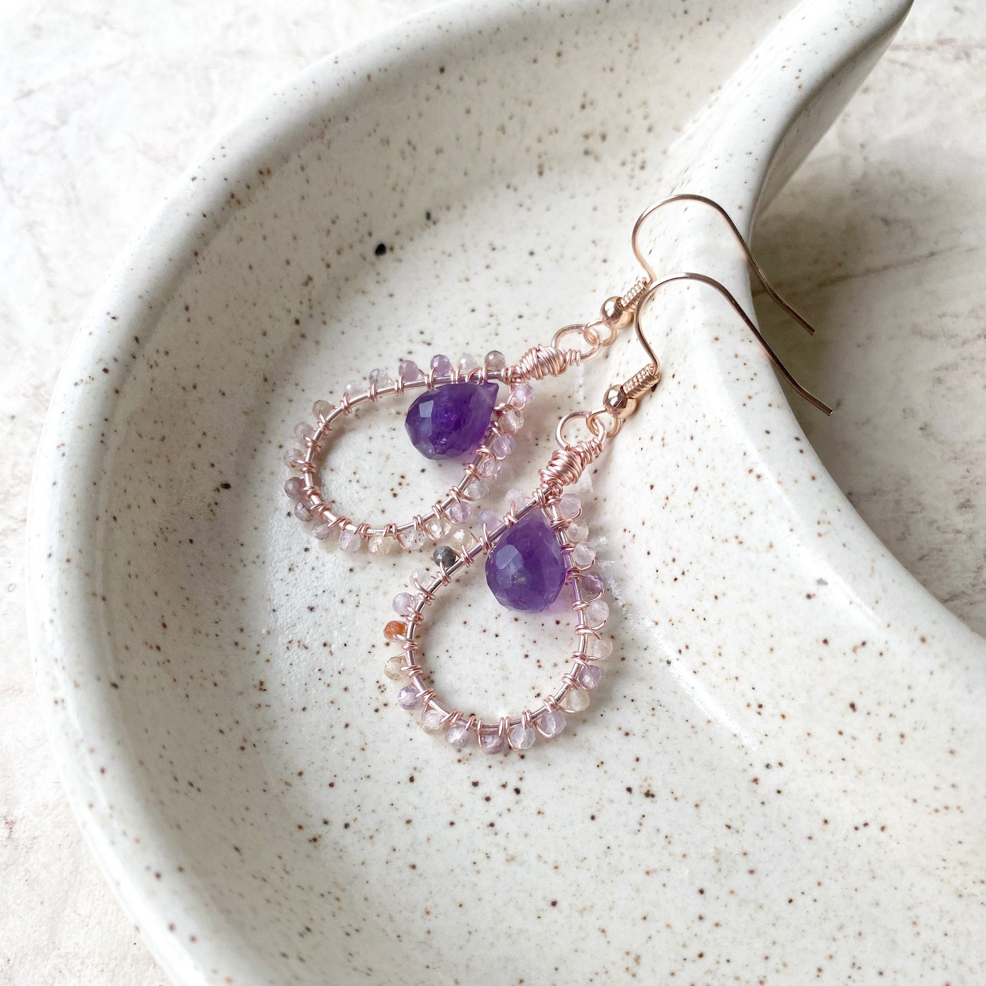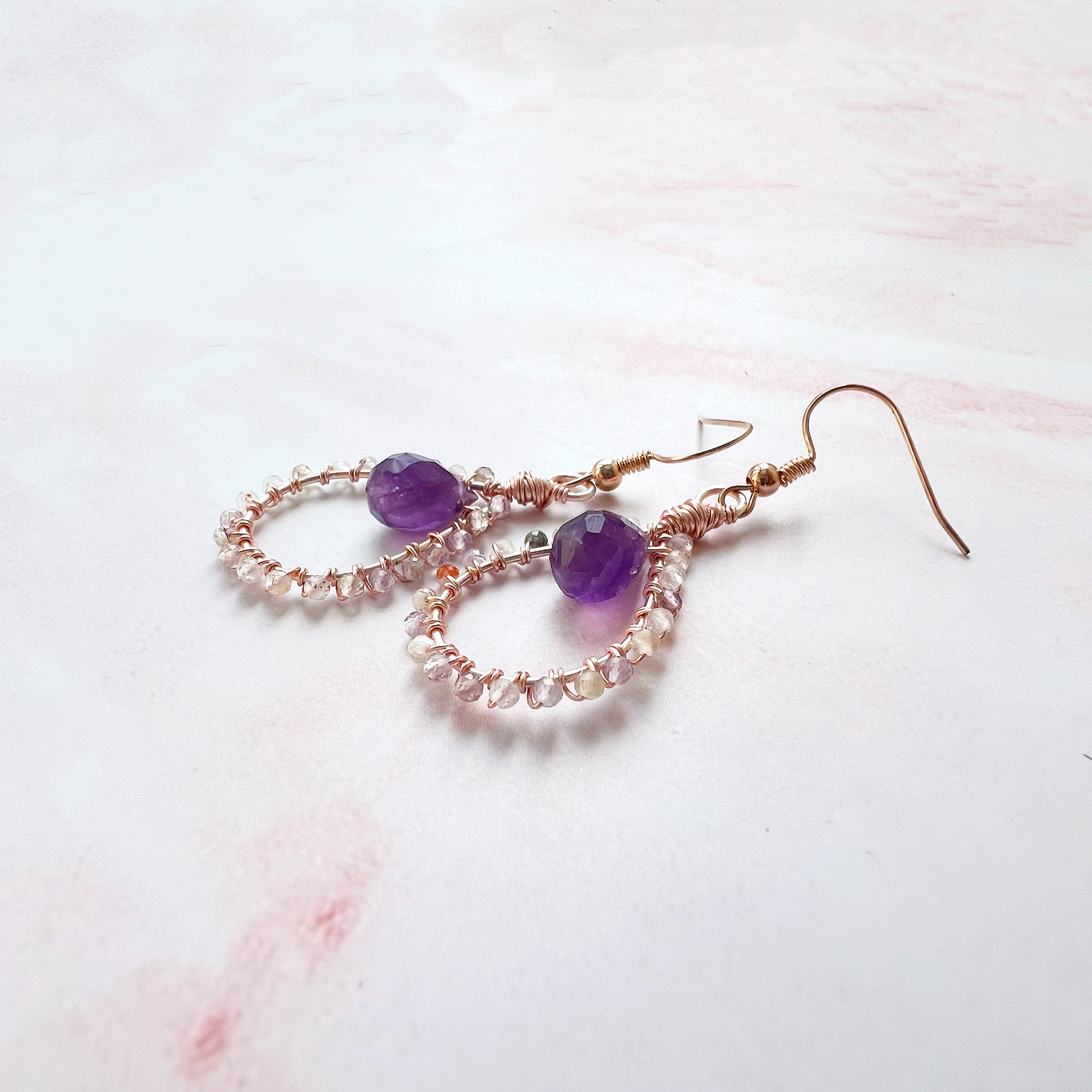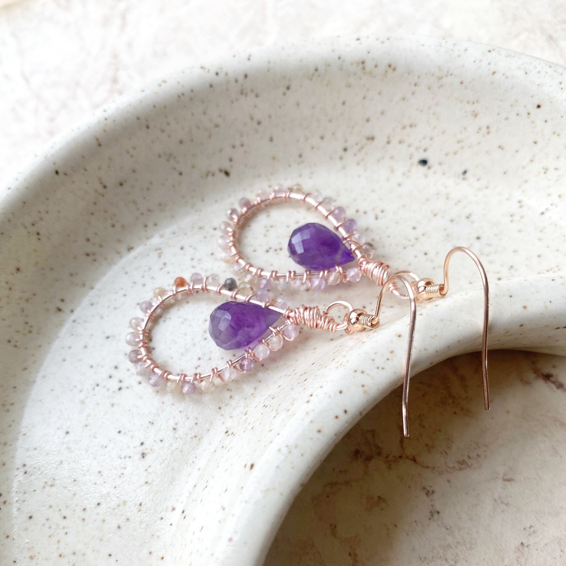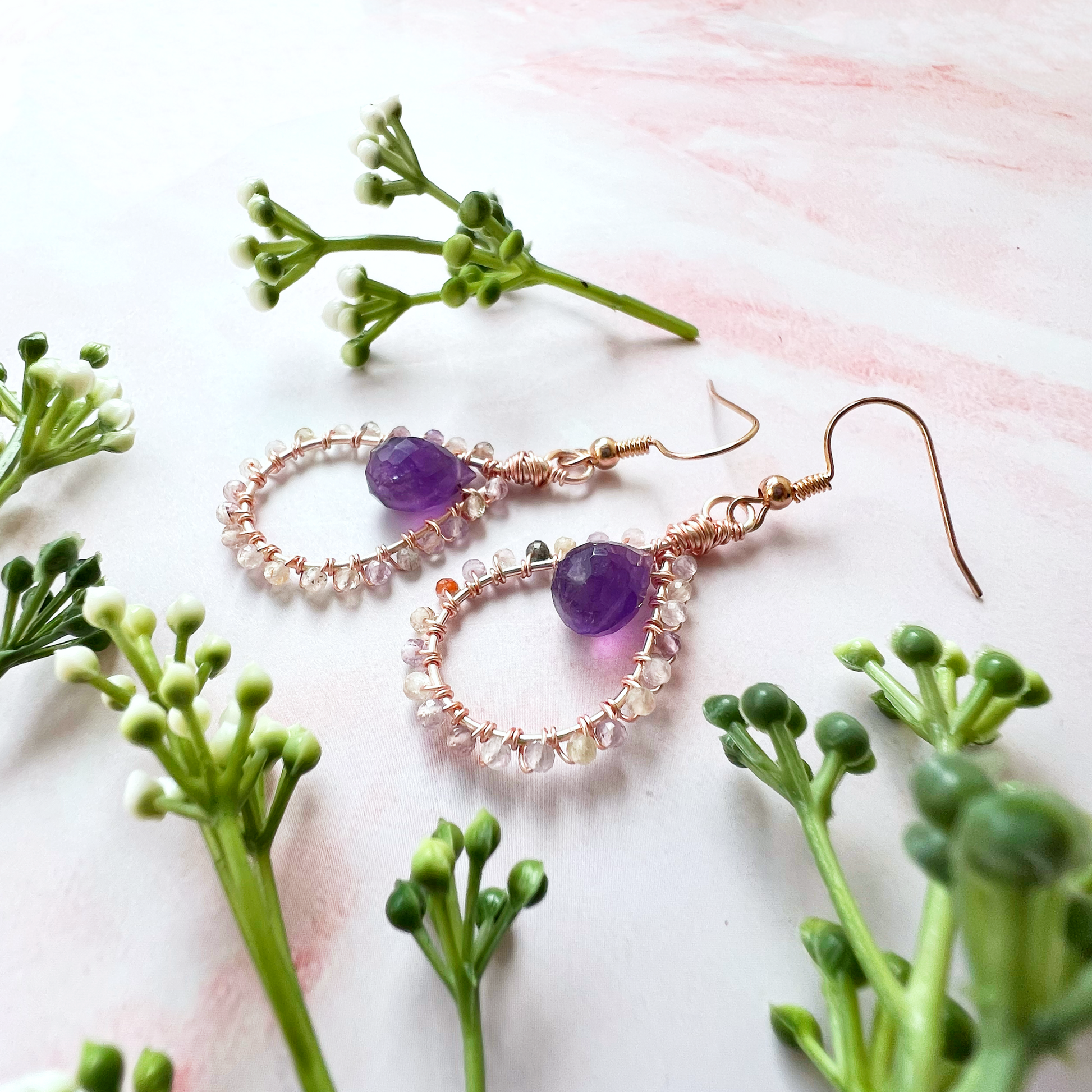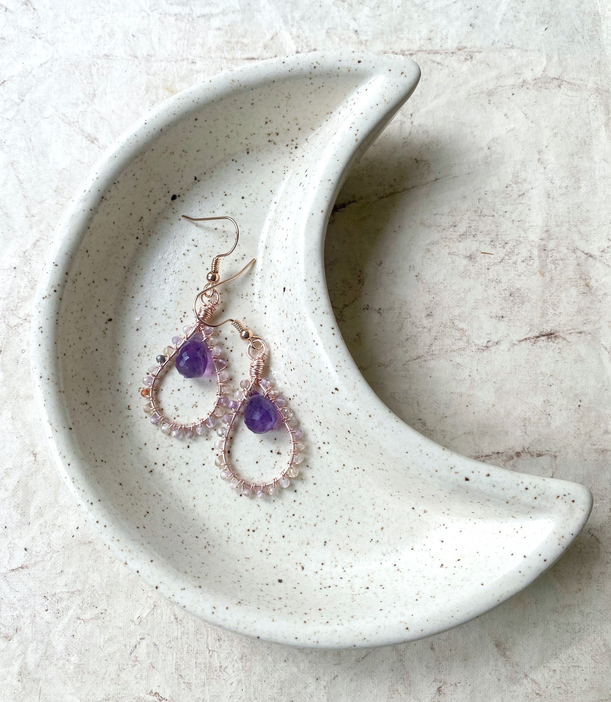 The amethyst gemstone pears are a beautiful deep purple that look beautifully delicate with the auralite.
