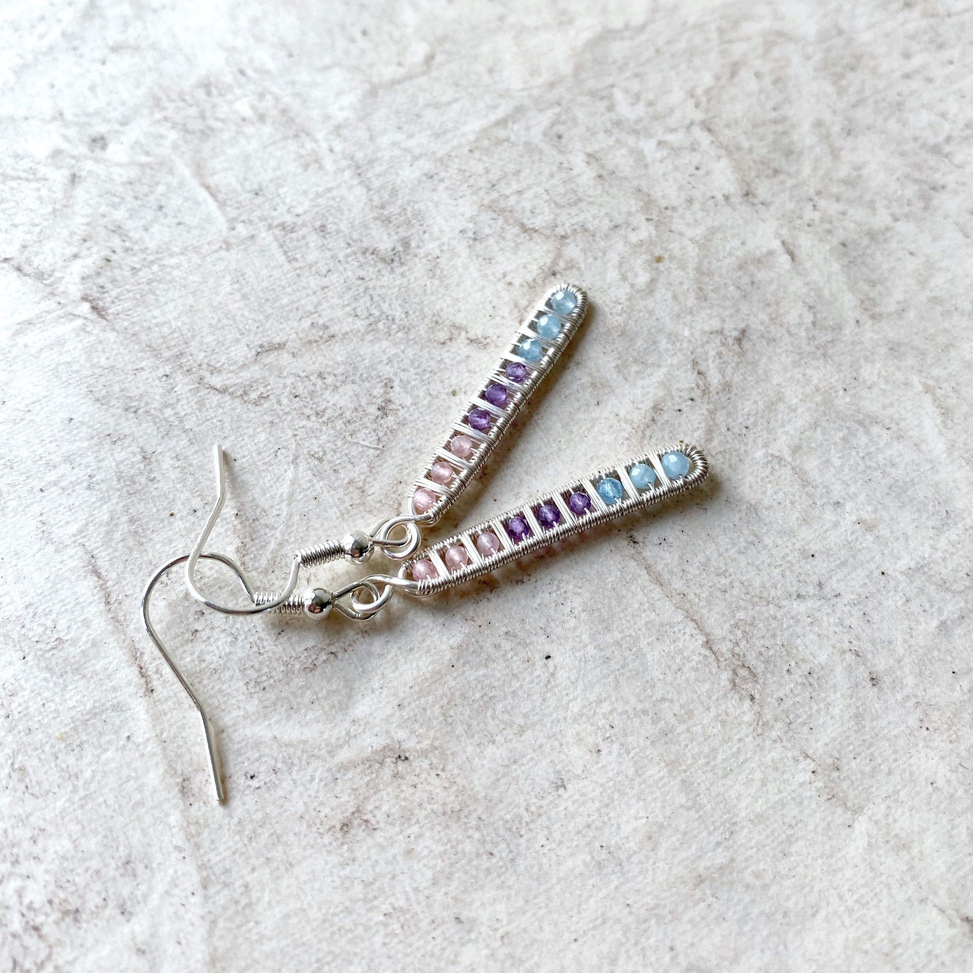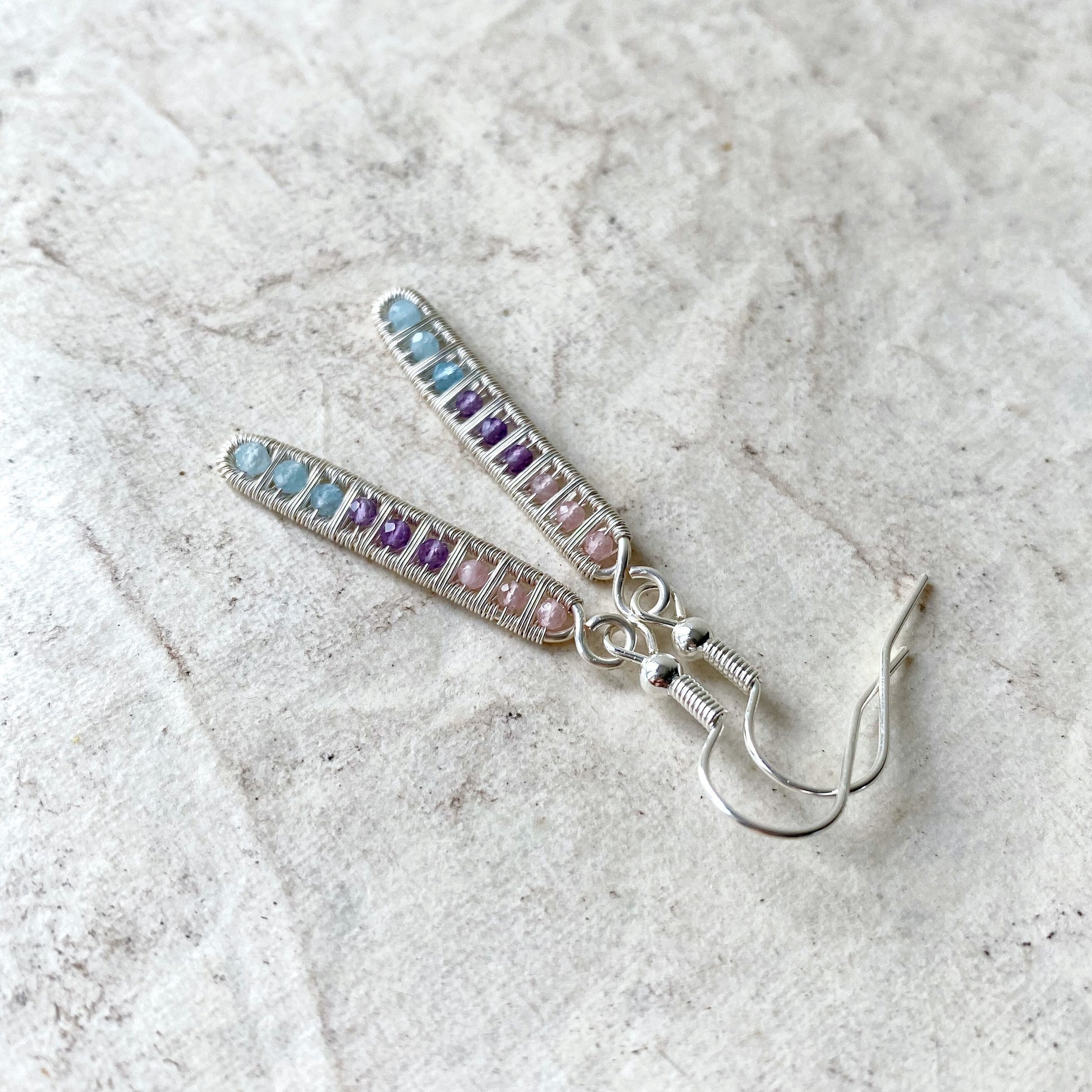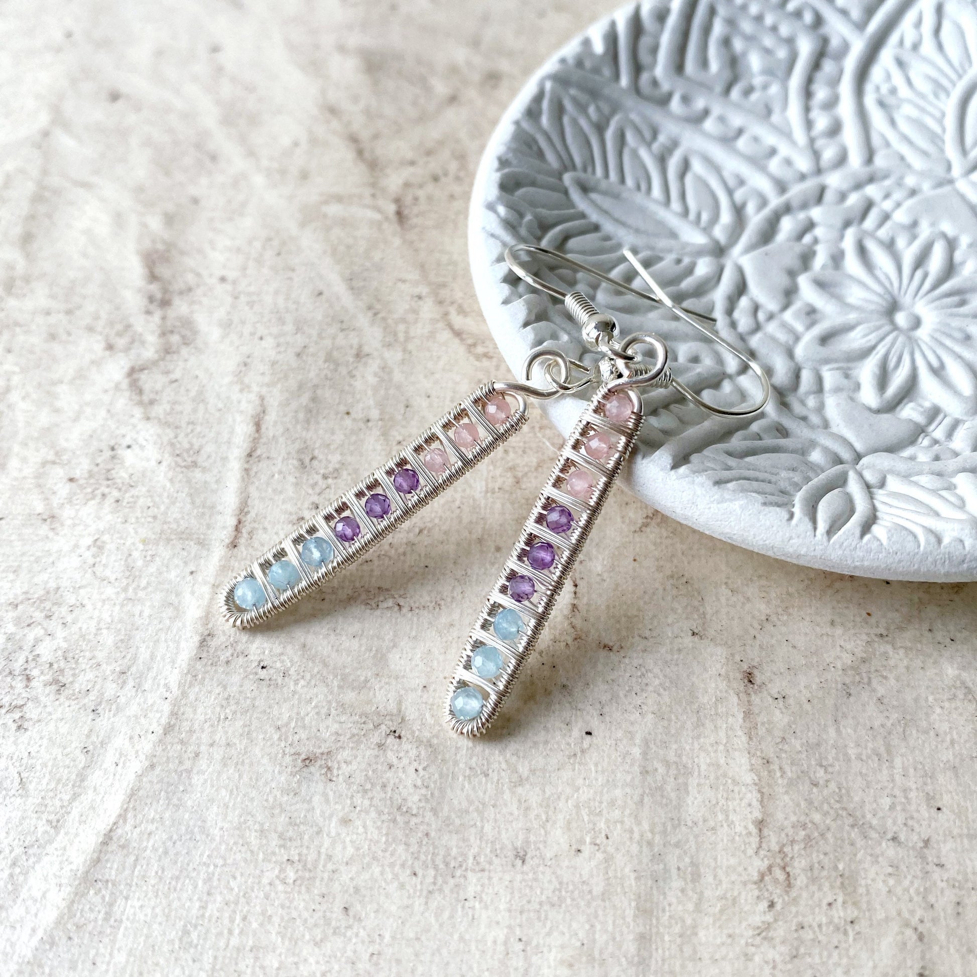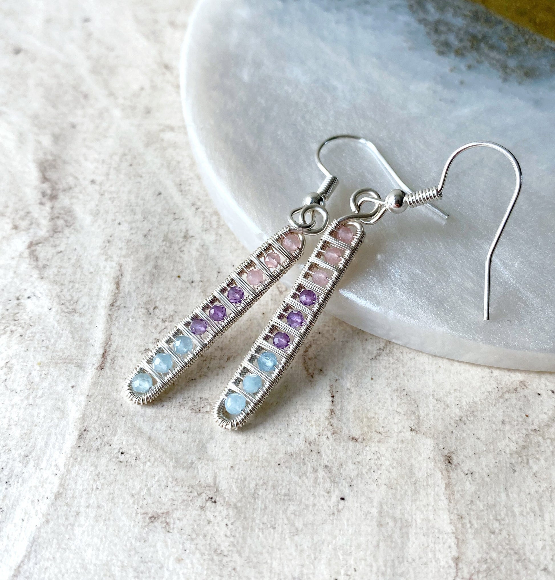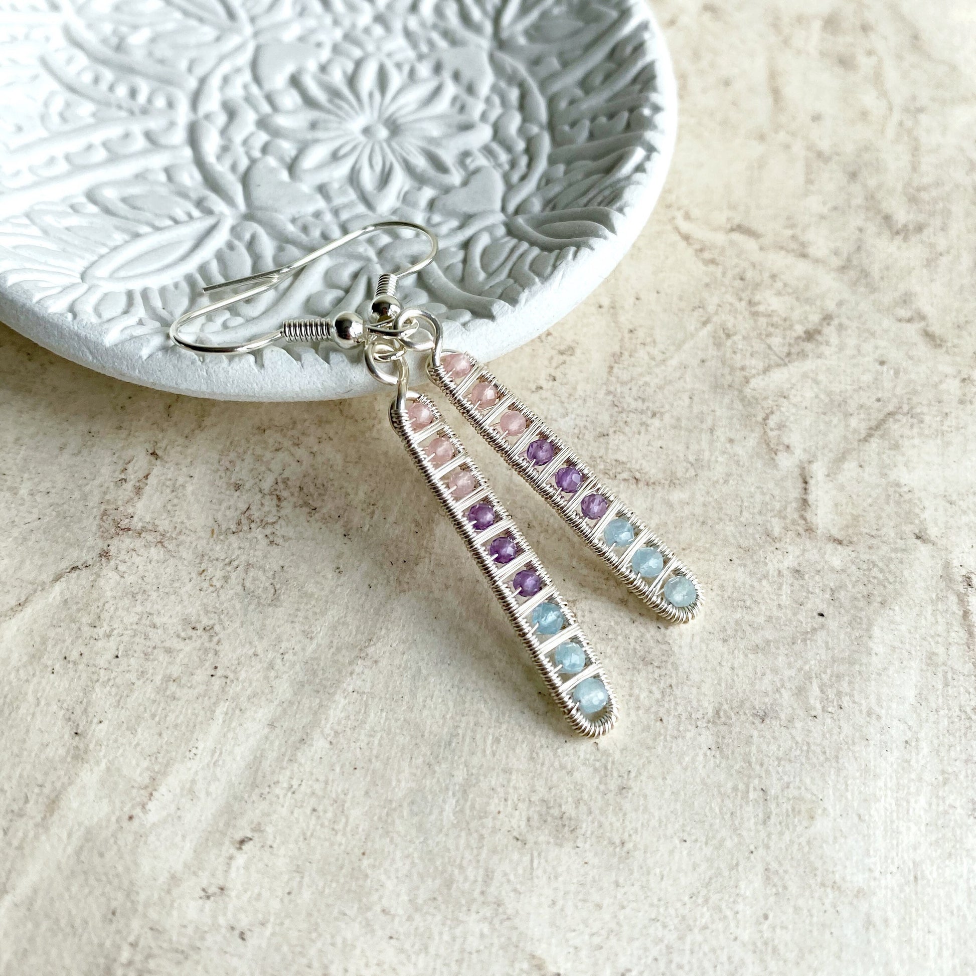 Ladder Earrings in Rose Quartz, Amethyst and Aquamarine
