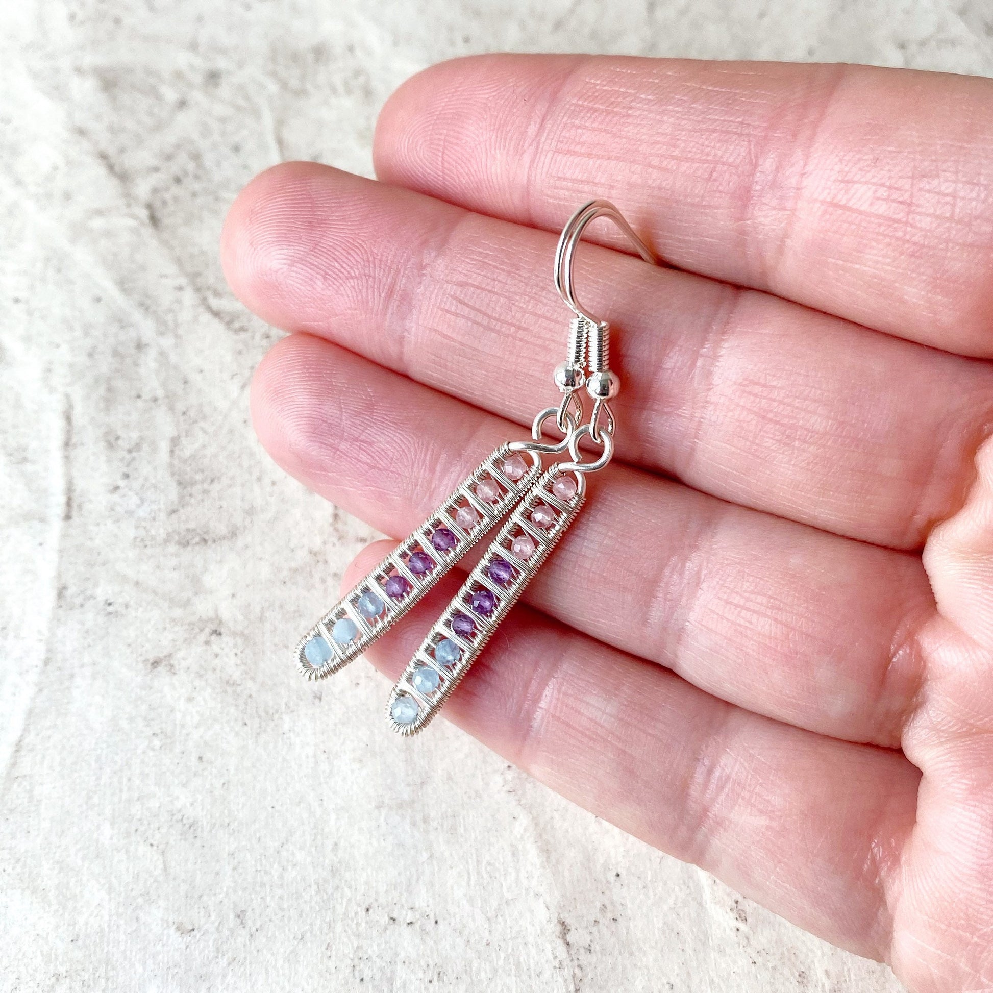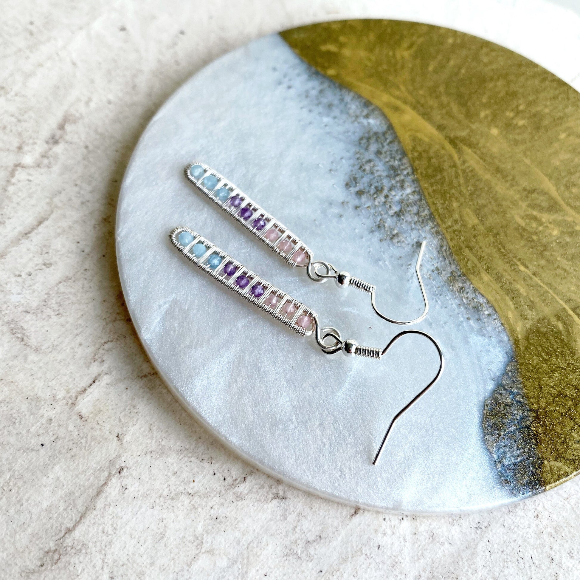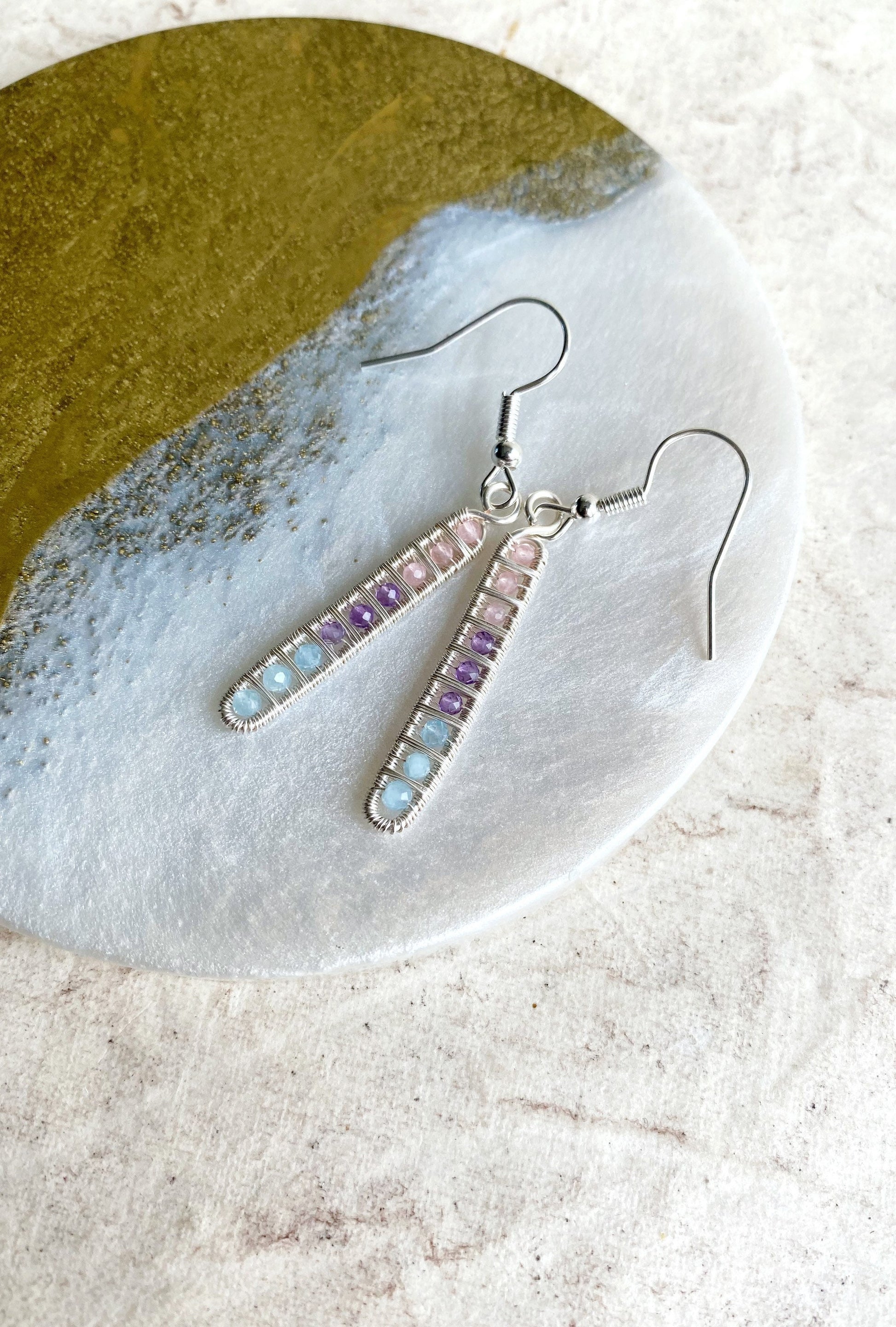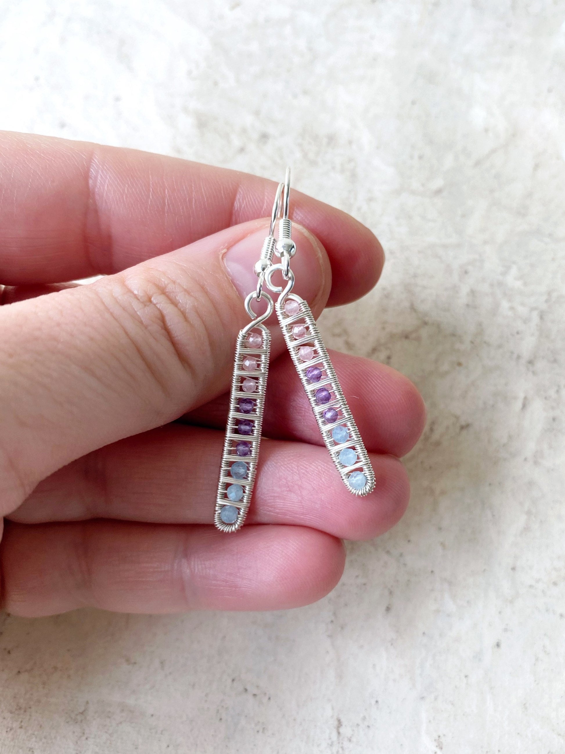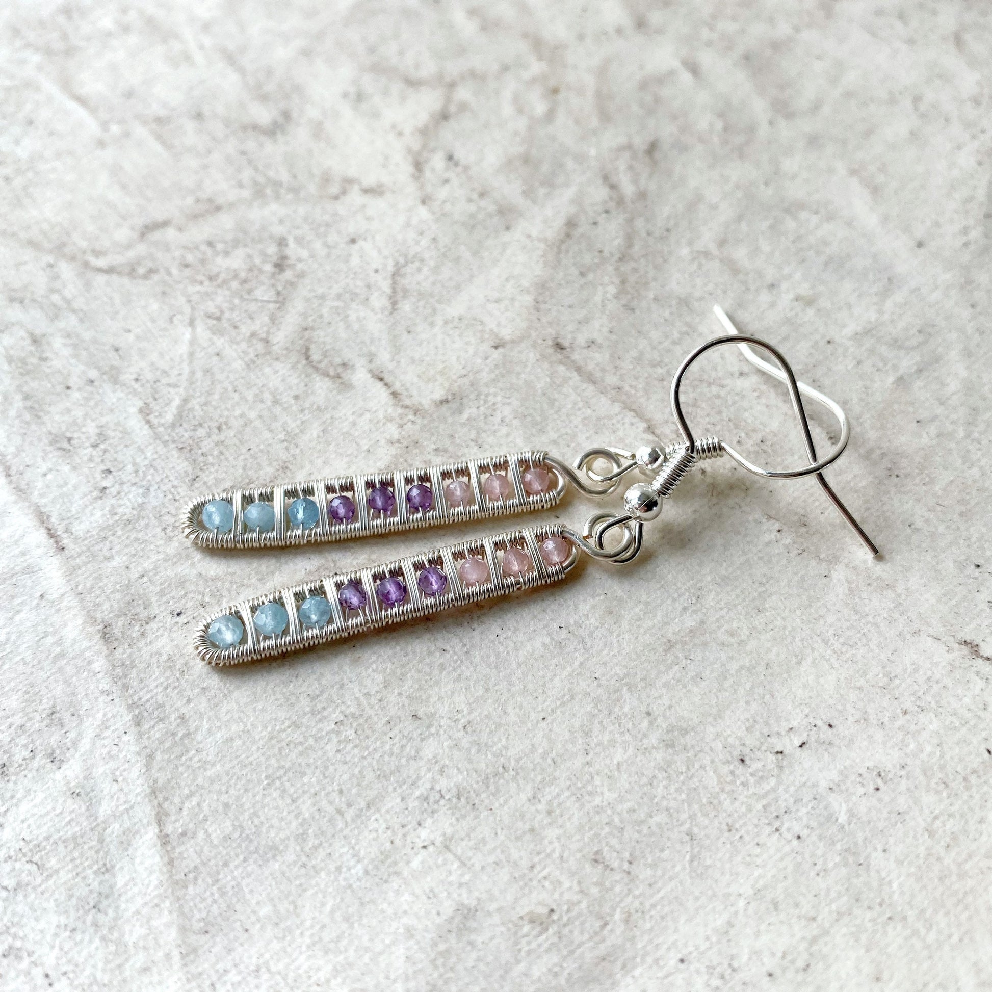 Ladder Earrings in Rose Quartz, Amethyst and Aquamarine