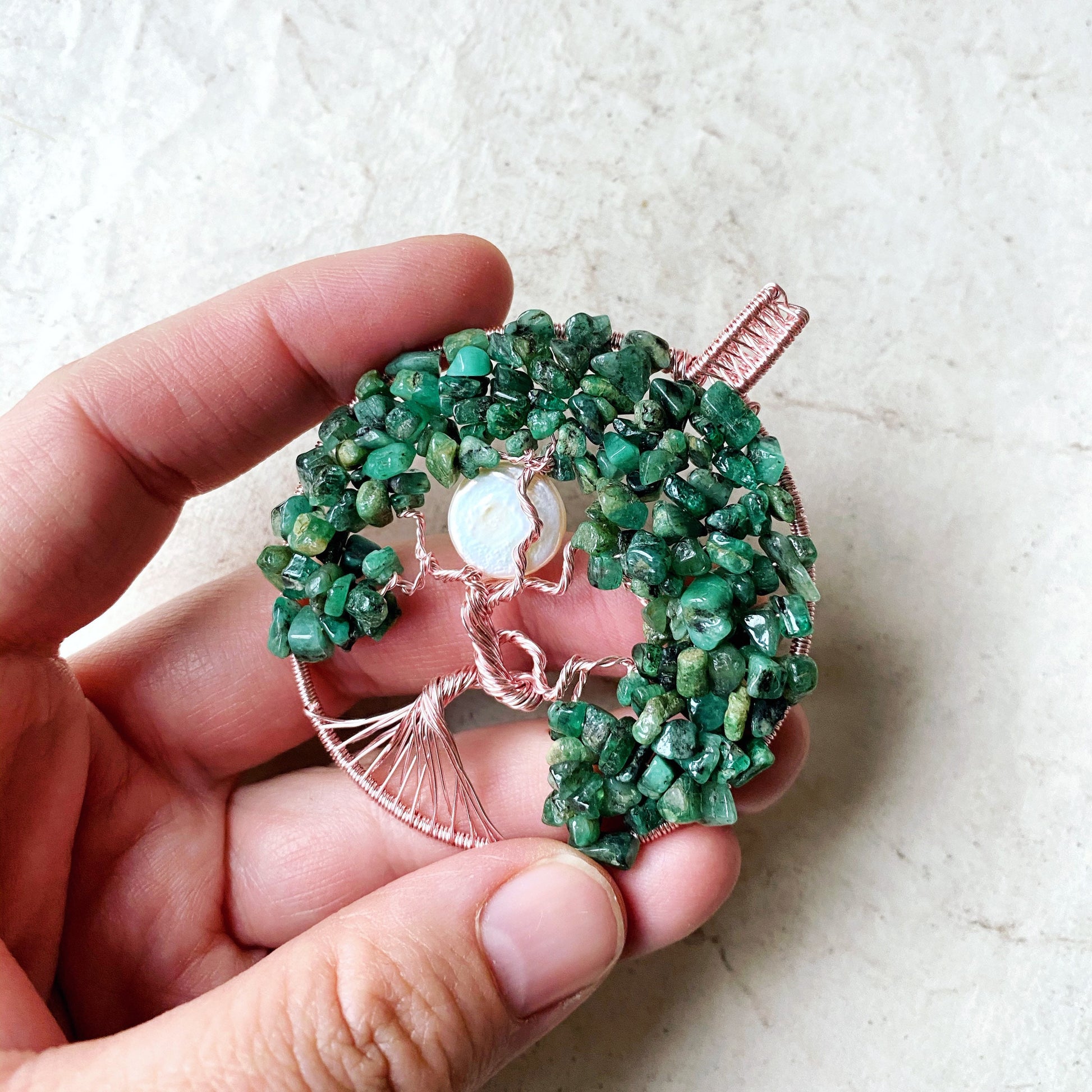 Emerald Tree of Life, May Birthstone Necklace, Green Stone Pendant, Heart Chakra Crystals, Yggdrasil Sacred Tree, Crystals for Loyalty
