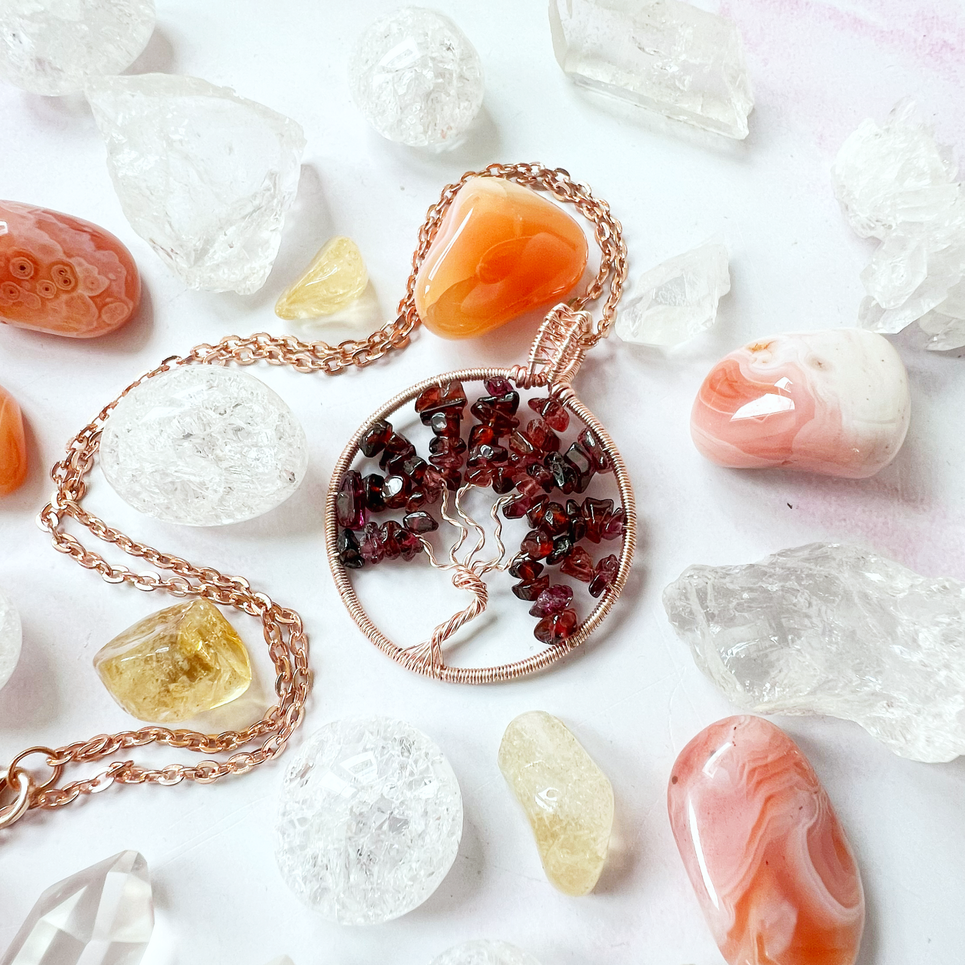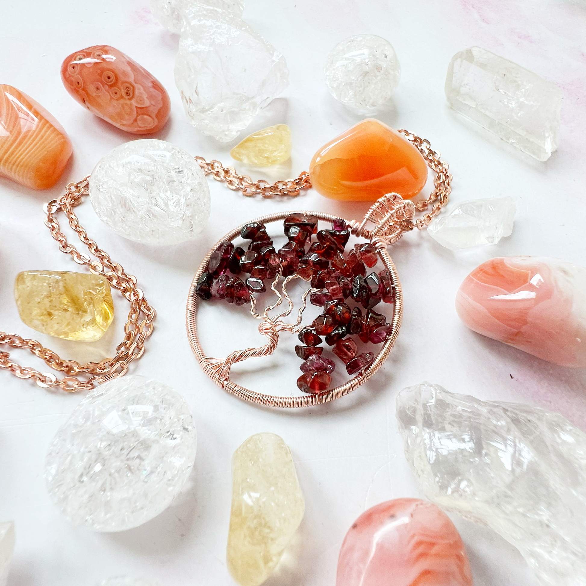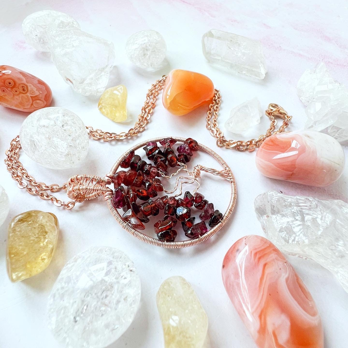 Connect with the energy of nature and feel the power of as above, so below with our Garnet Tree of Life Necklace!