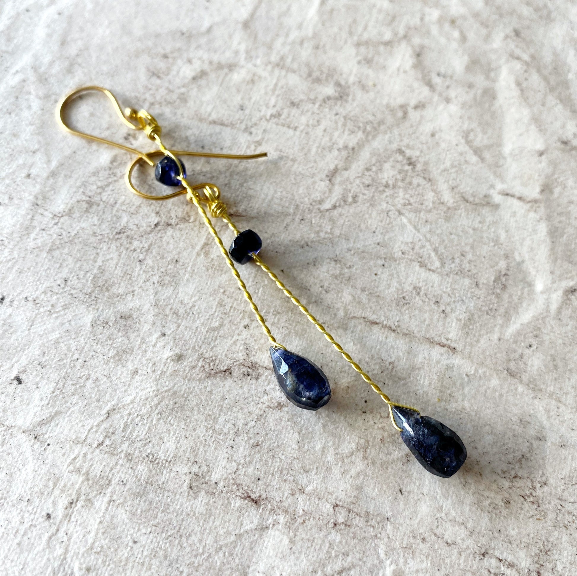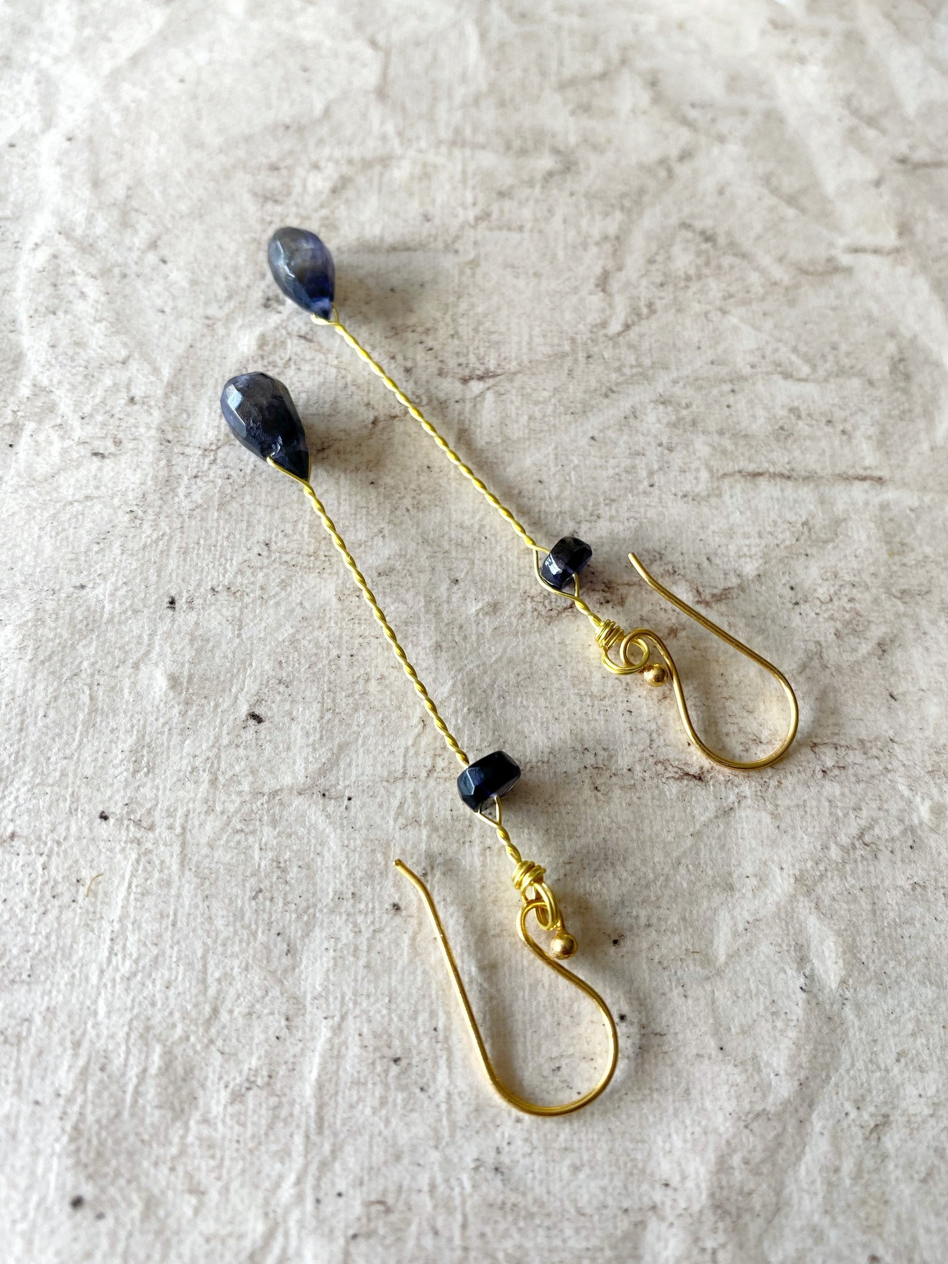 Iolite crystal earrings, iolite earrings, natural gemstone earrings, gold drop earrings, blue earrings, blue stone earrings, crystal jewelry