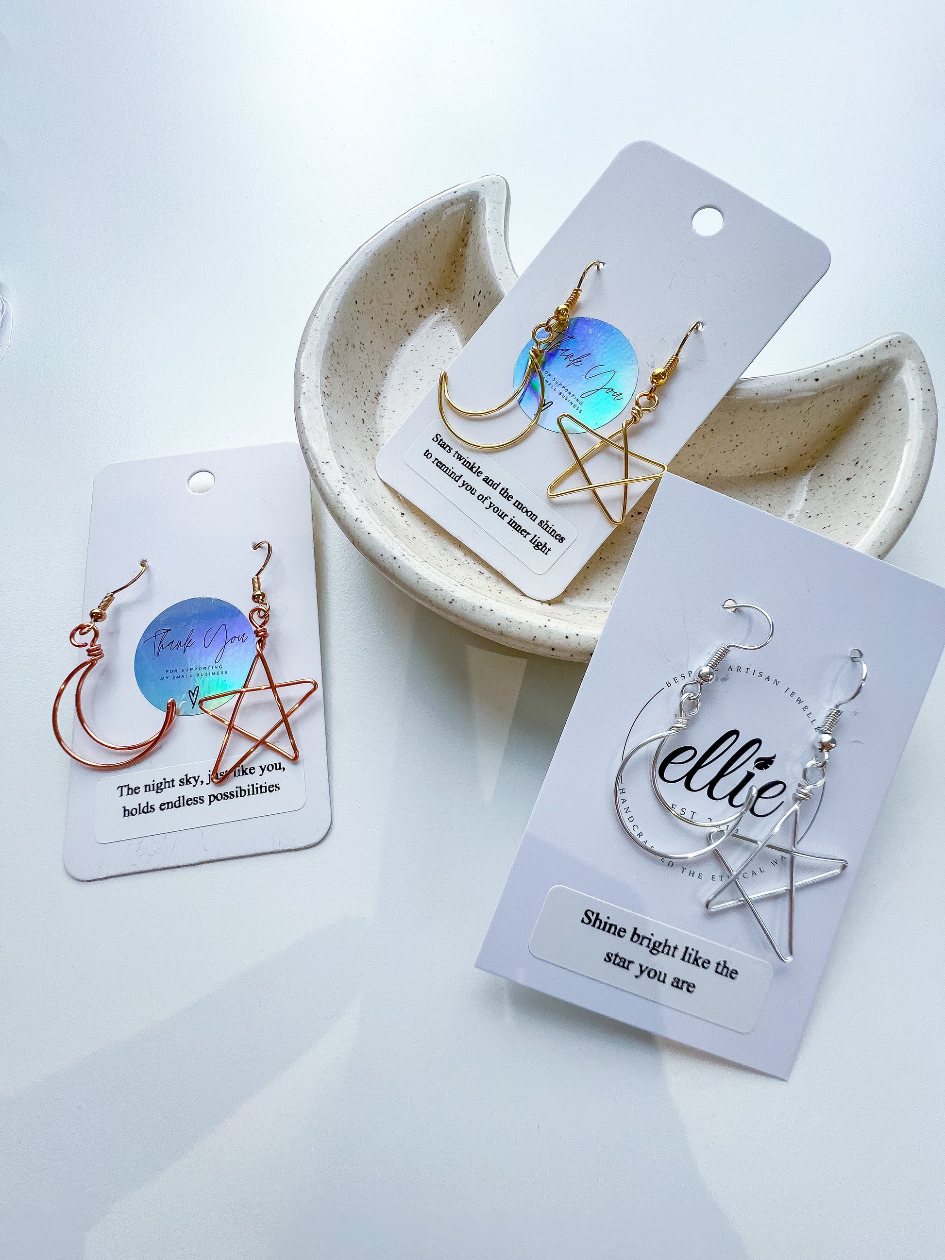 I loved making these cute mismatched earrings, and each moon and star and been made by yours truly ☺️