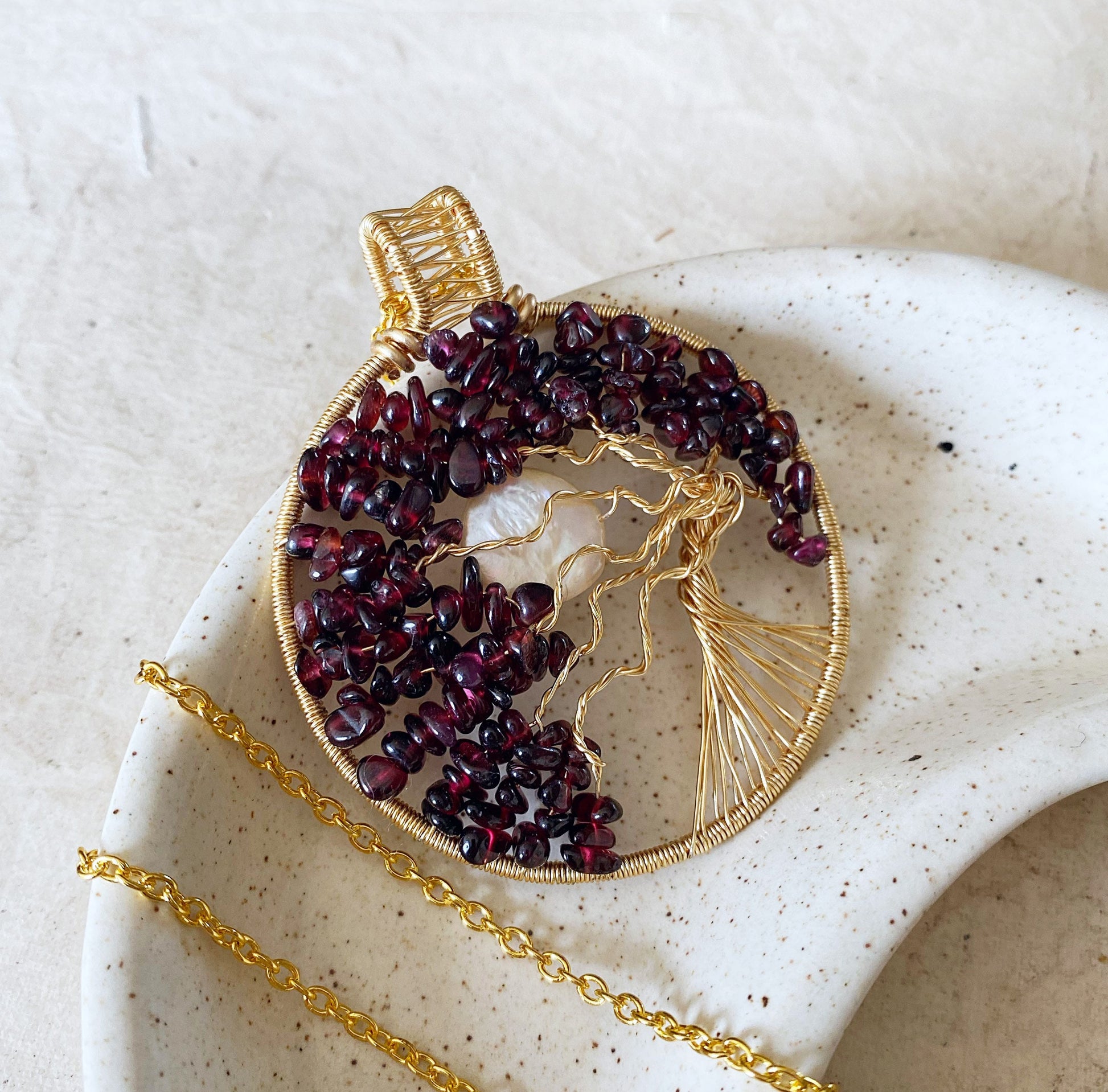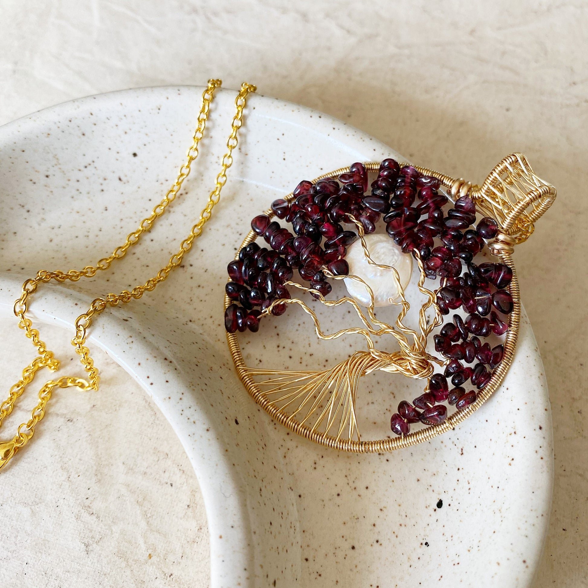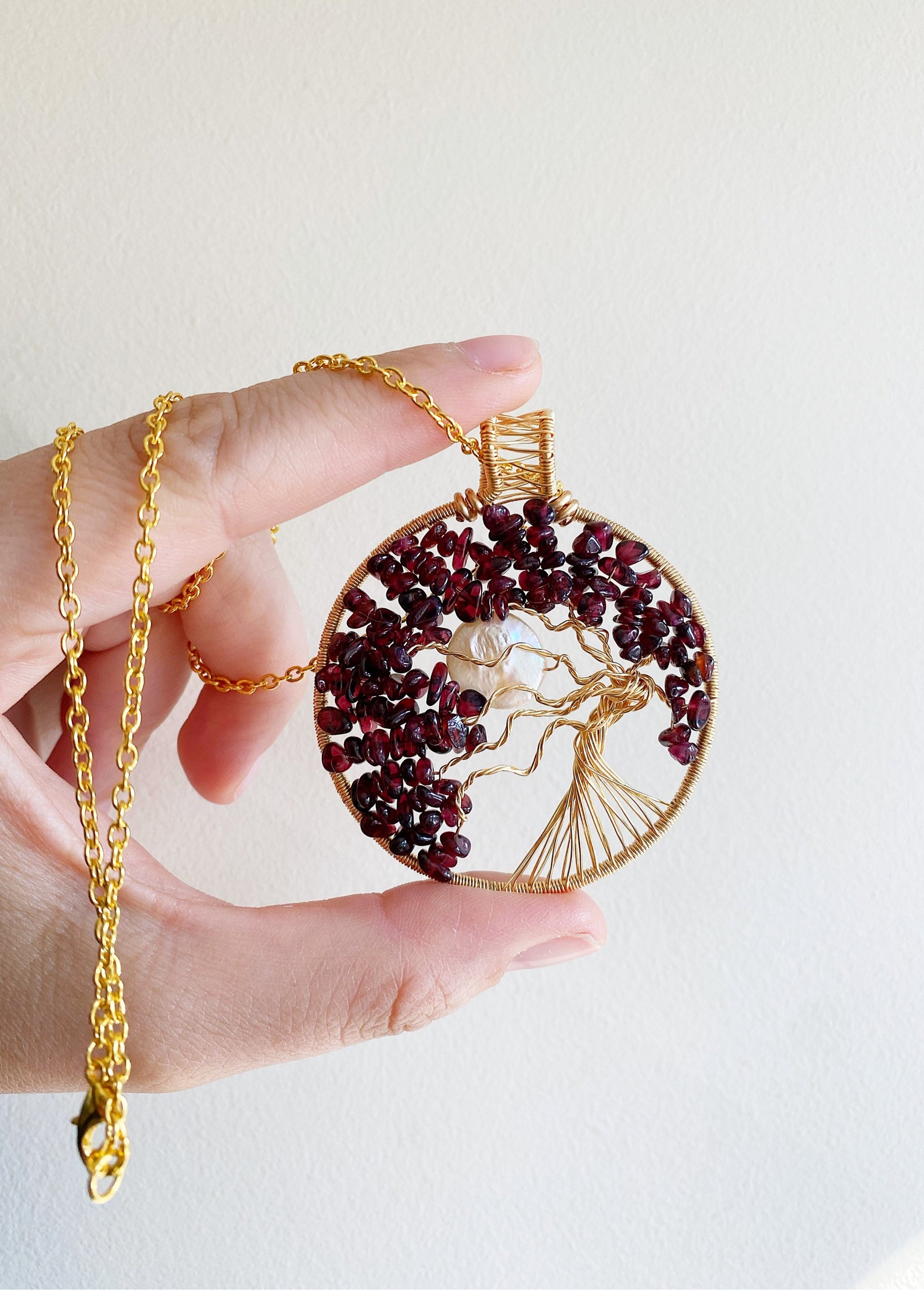 Natural Garnet Tree of Life pendant, January Birthstone necklace, Red Statement Necklace, Capricorn jewellery for them, Christmas necklace