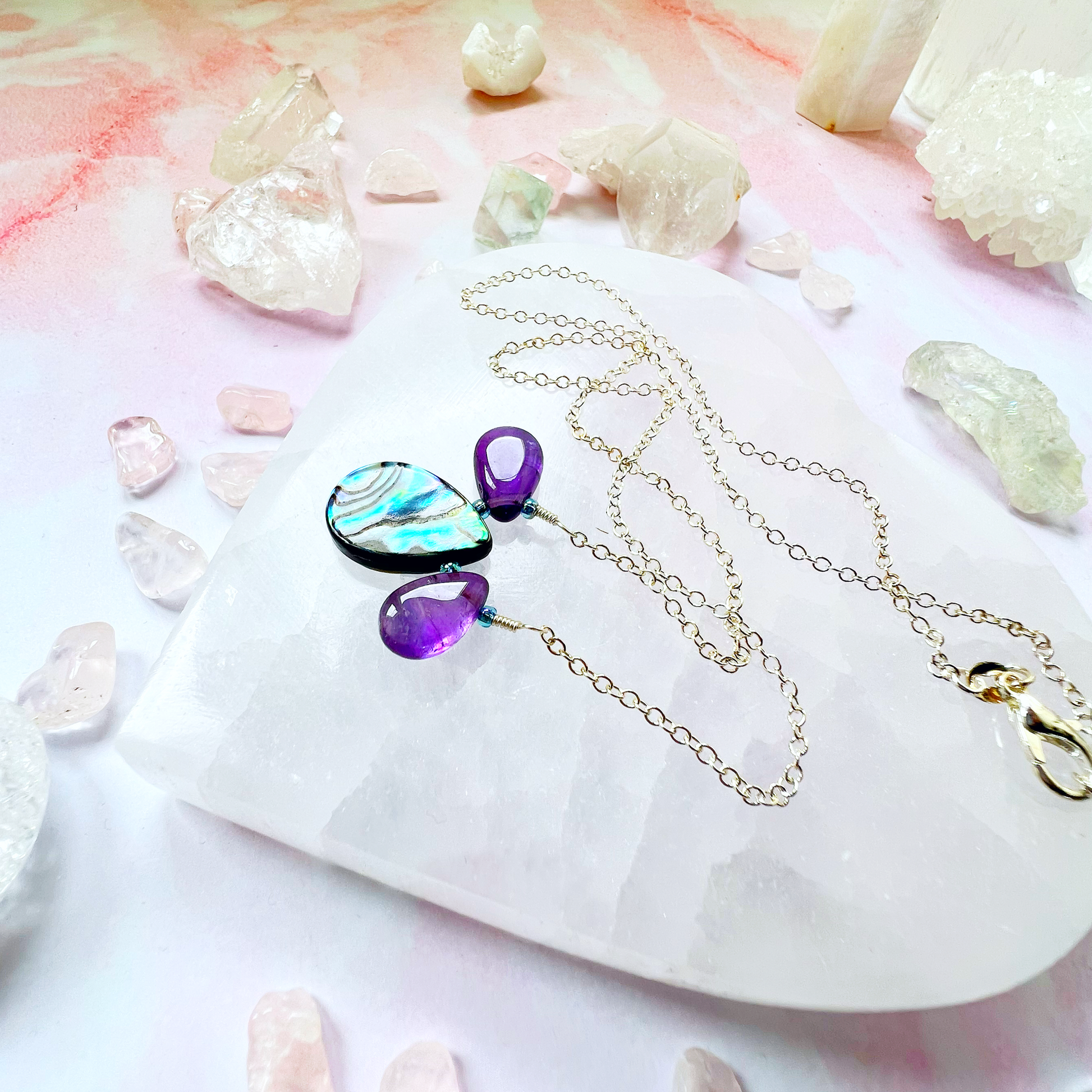 Peacock Amethyst and Abalone necklace