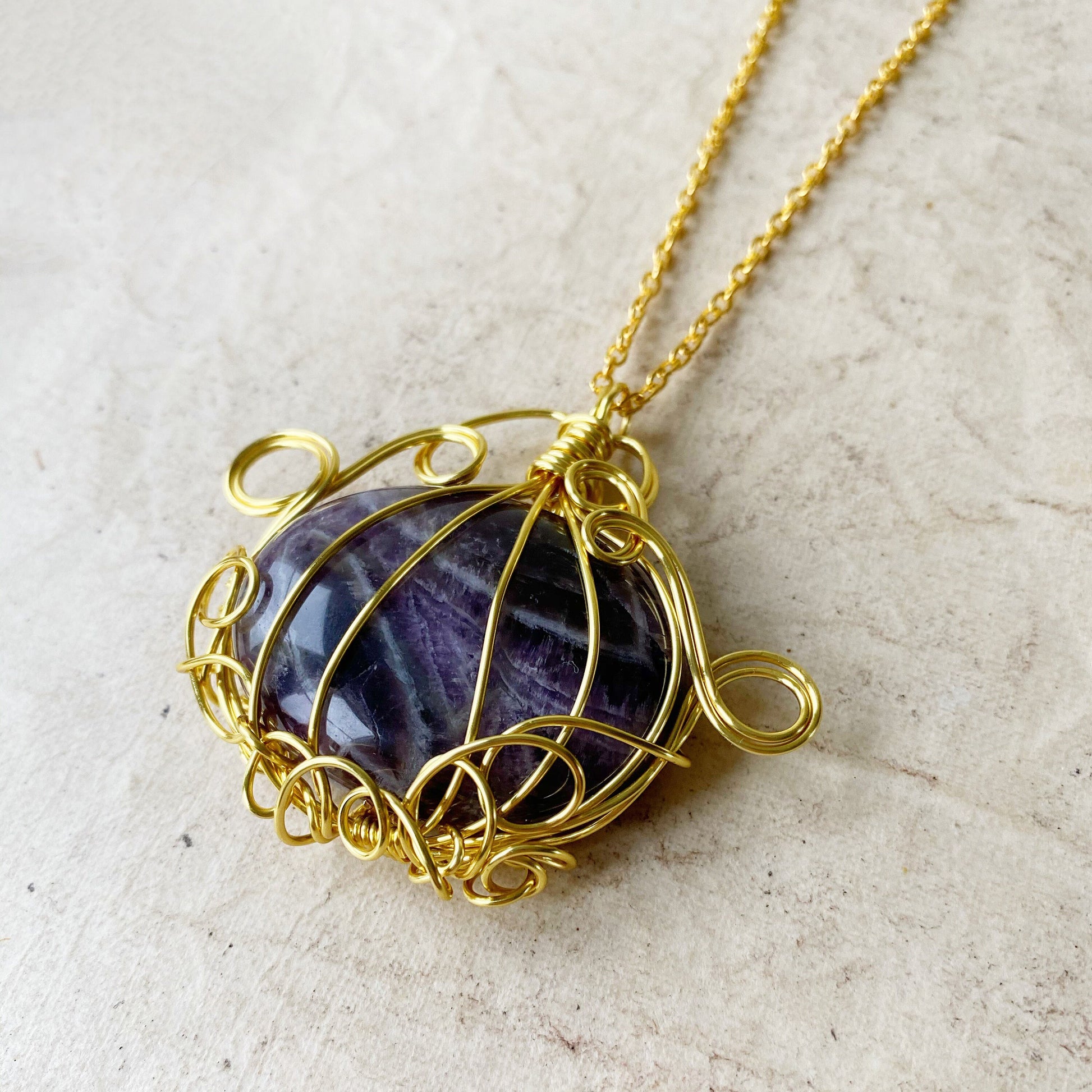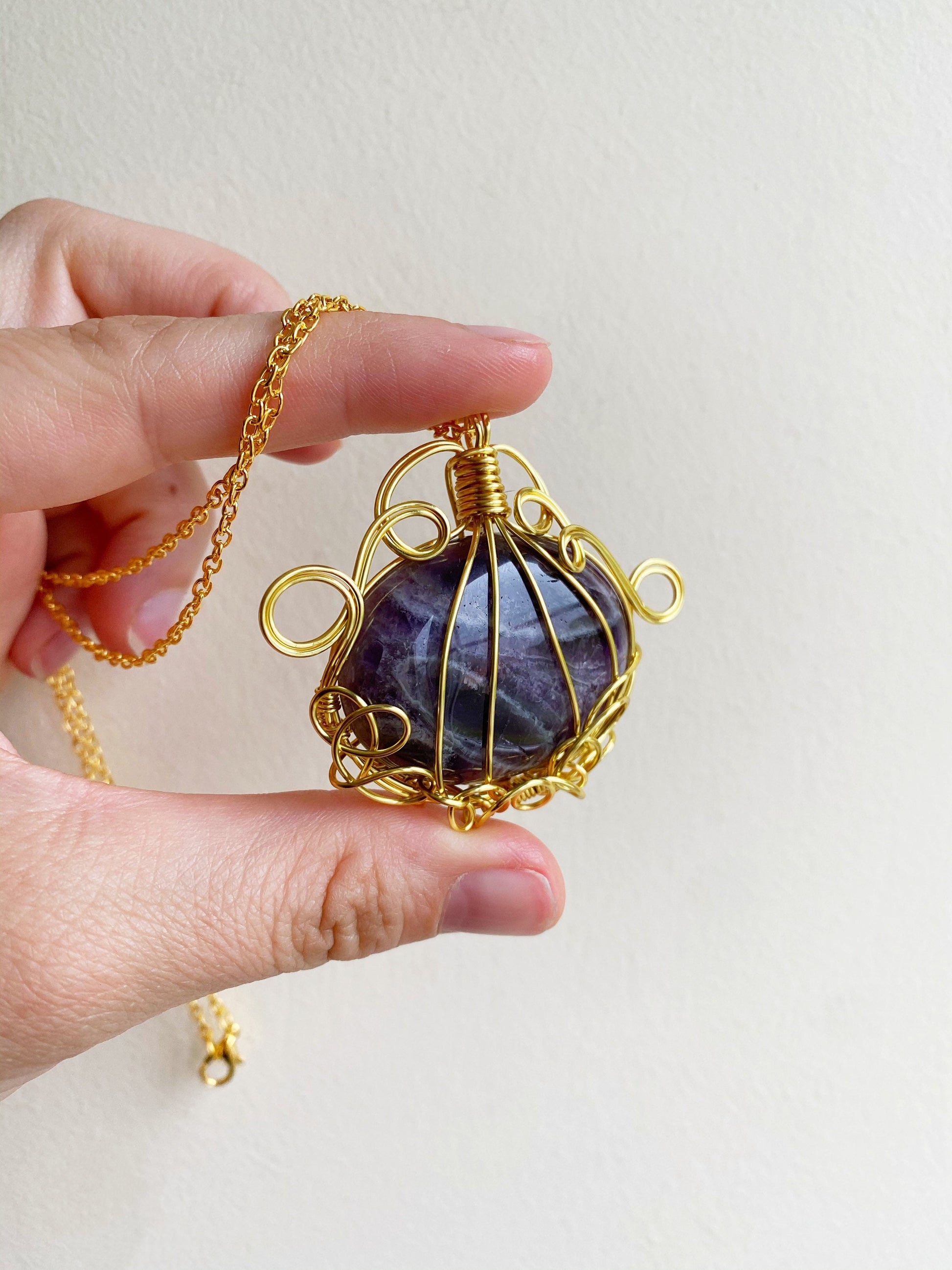 Purple amethyst necklace, pumpkin necklace, Halloween jewellery, spooky necklace, pumpkin pendant, purple crystal necklace, gold statement