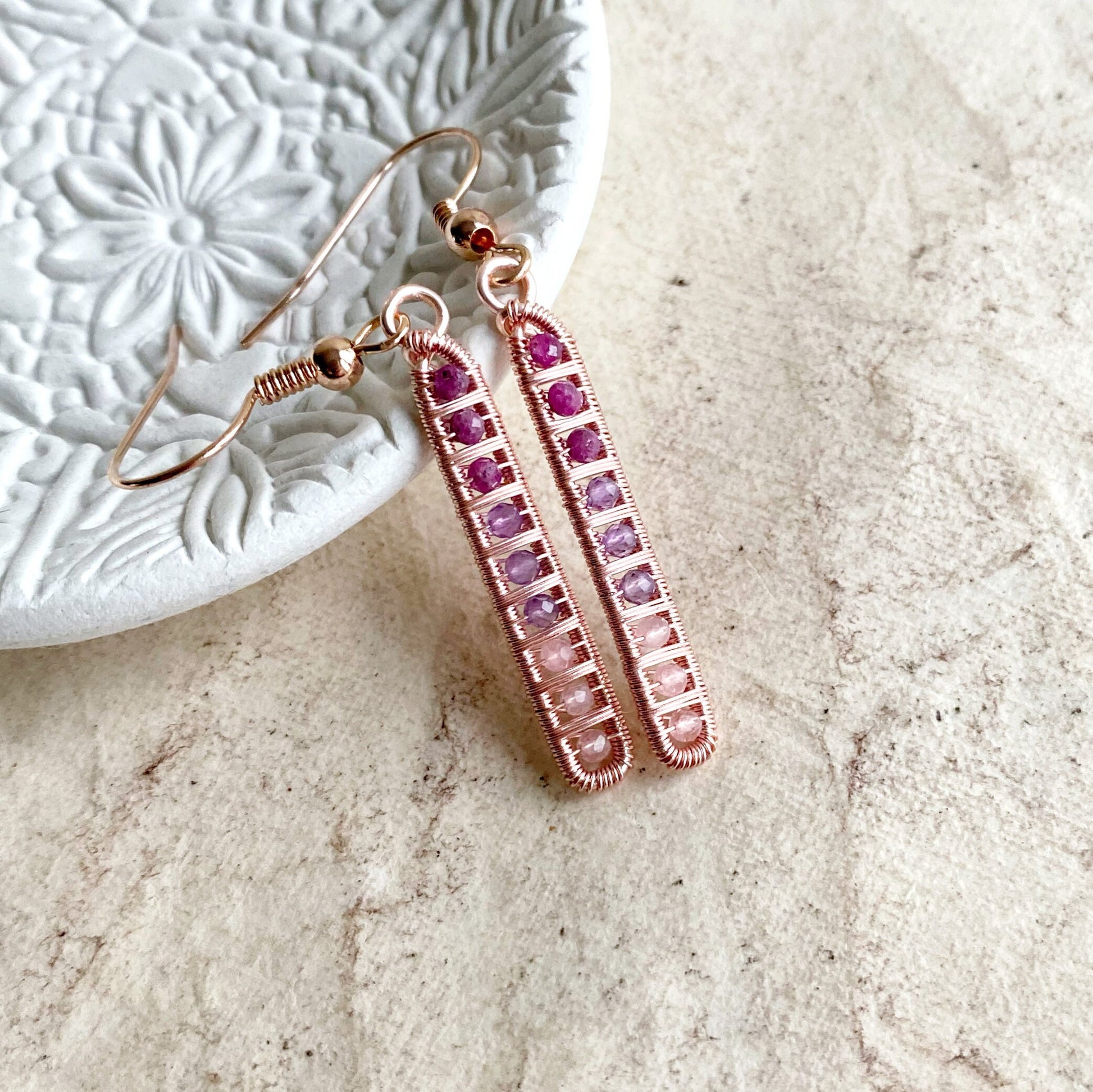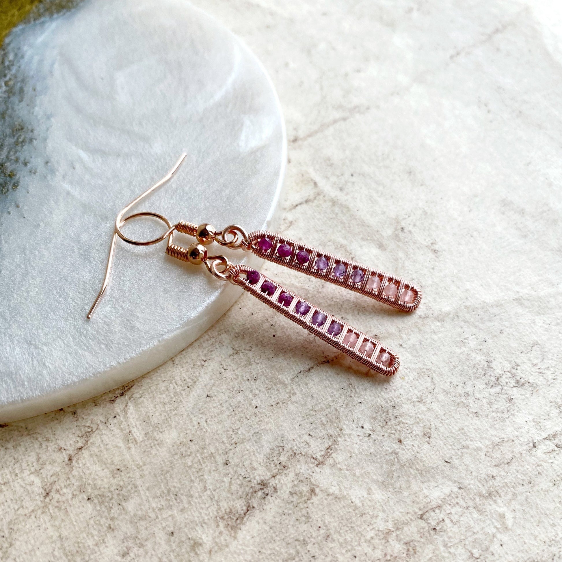 Red Ruby earrings, Minimal Earrings, Rose Gold Jewellery, Amethyst Earrings, Rose Quartz Earrings, Ombré Crystal Jewellery
