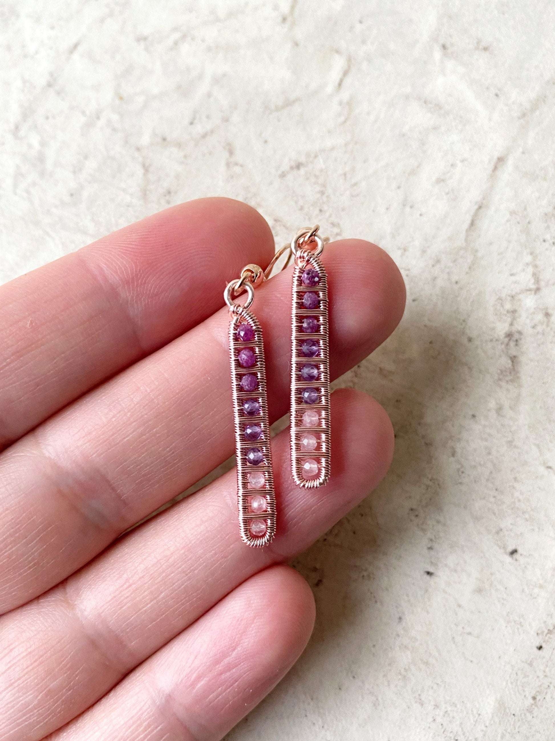 Ruby, Amethyst and Rose Quartz Ladder Earrings