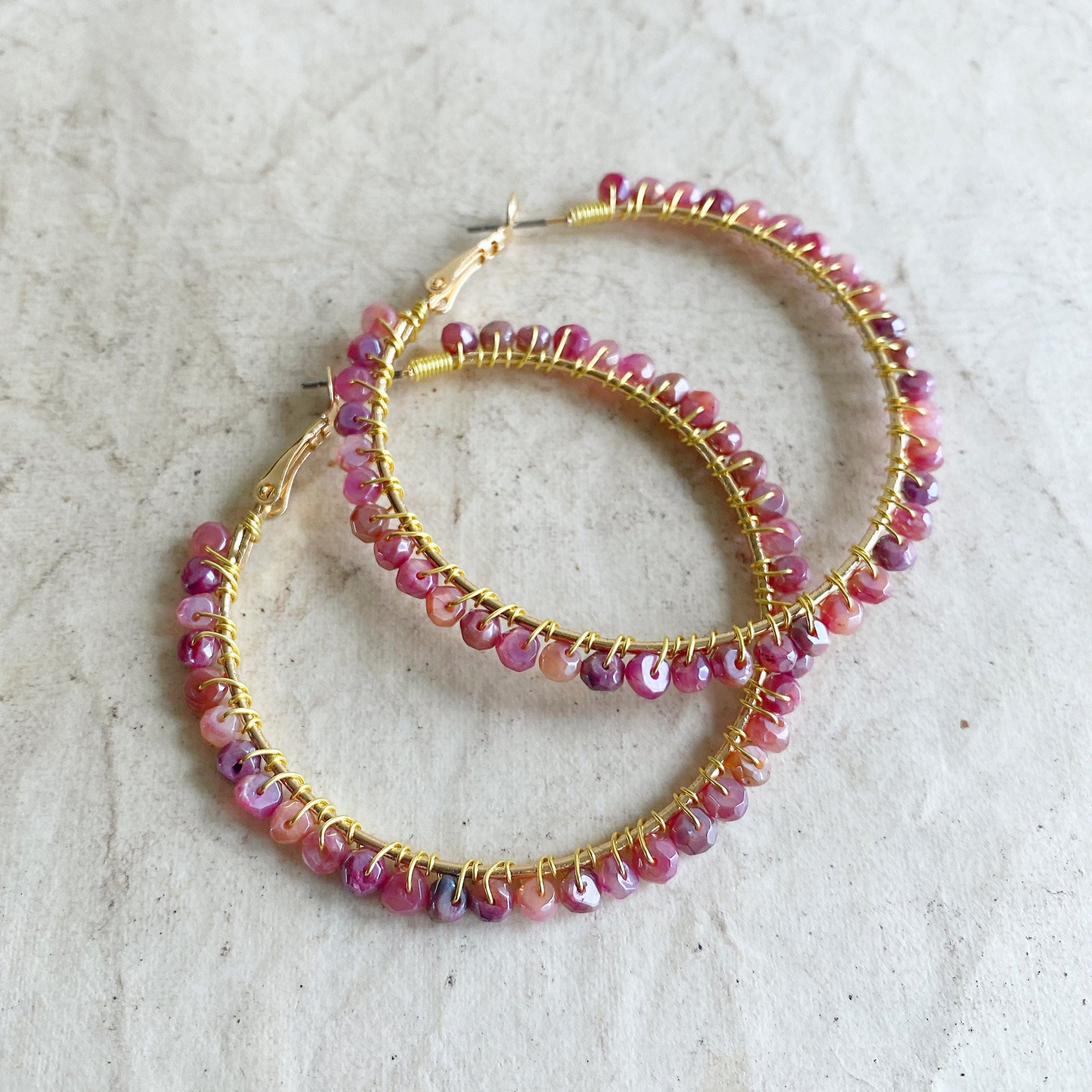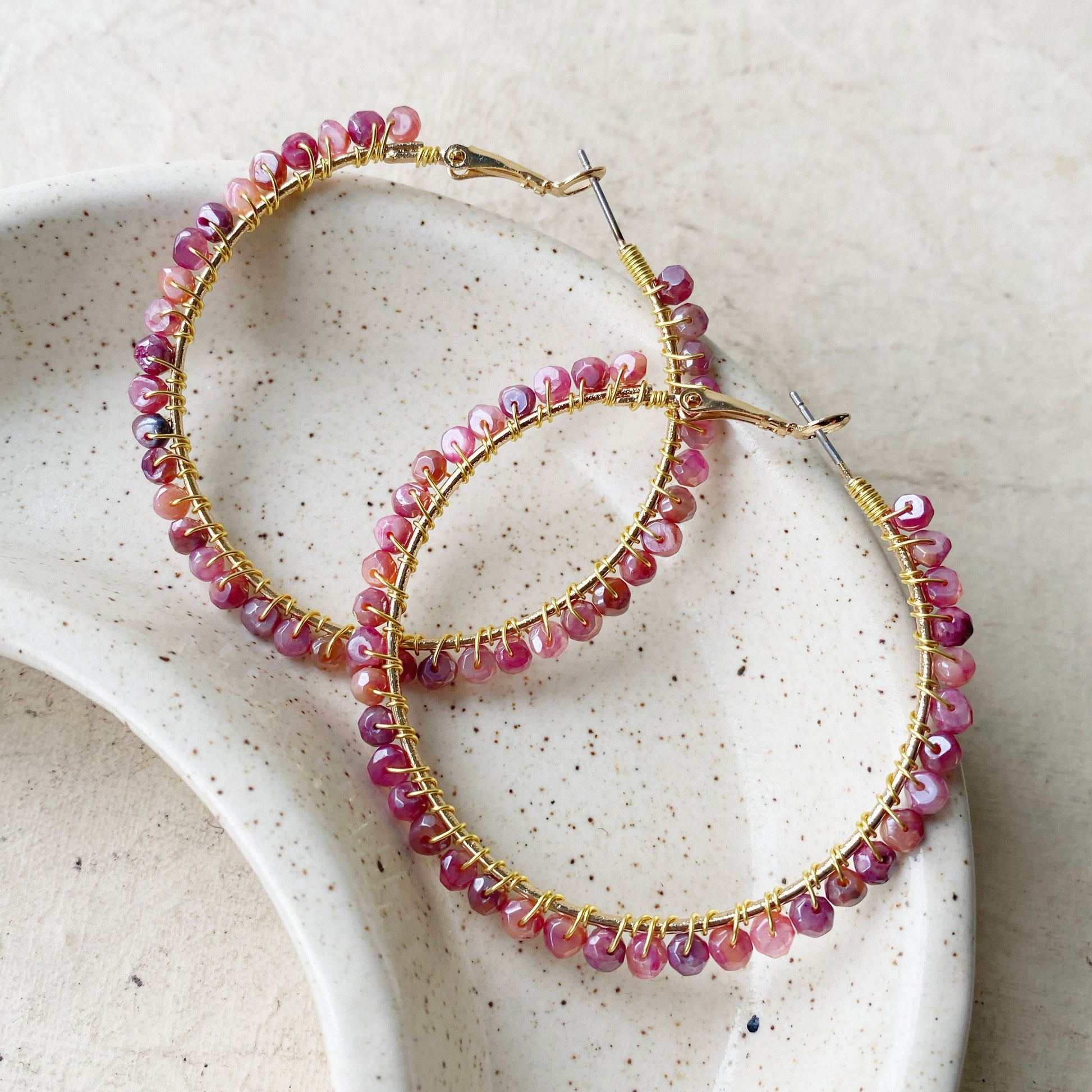 Red statement earrings, moonstone Crystal earrings, bohemian jewellery, rainbow hoop earrings, gold boho earrings, gemstone hoops