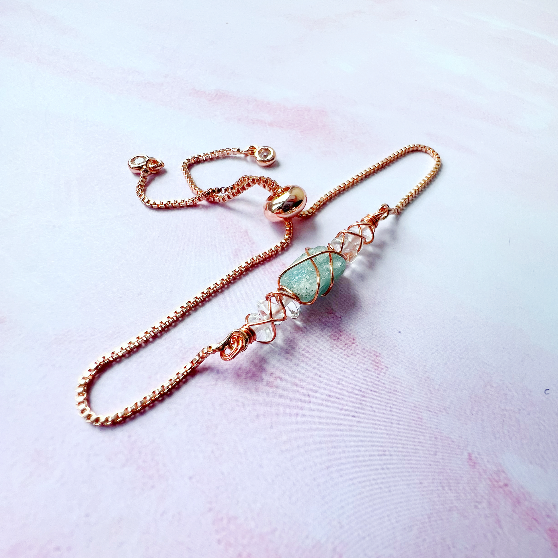 Beautiful Clear Quartz bracelets with a rose gold plated slider.