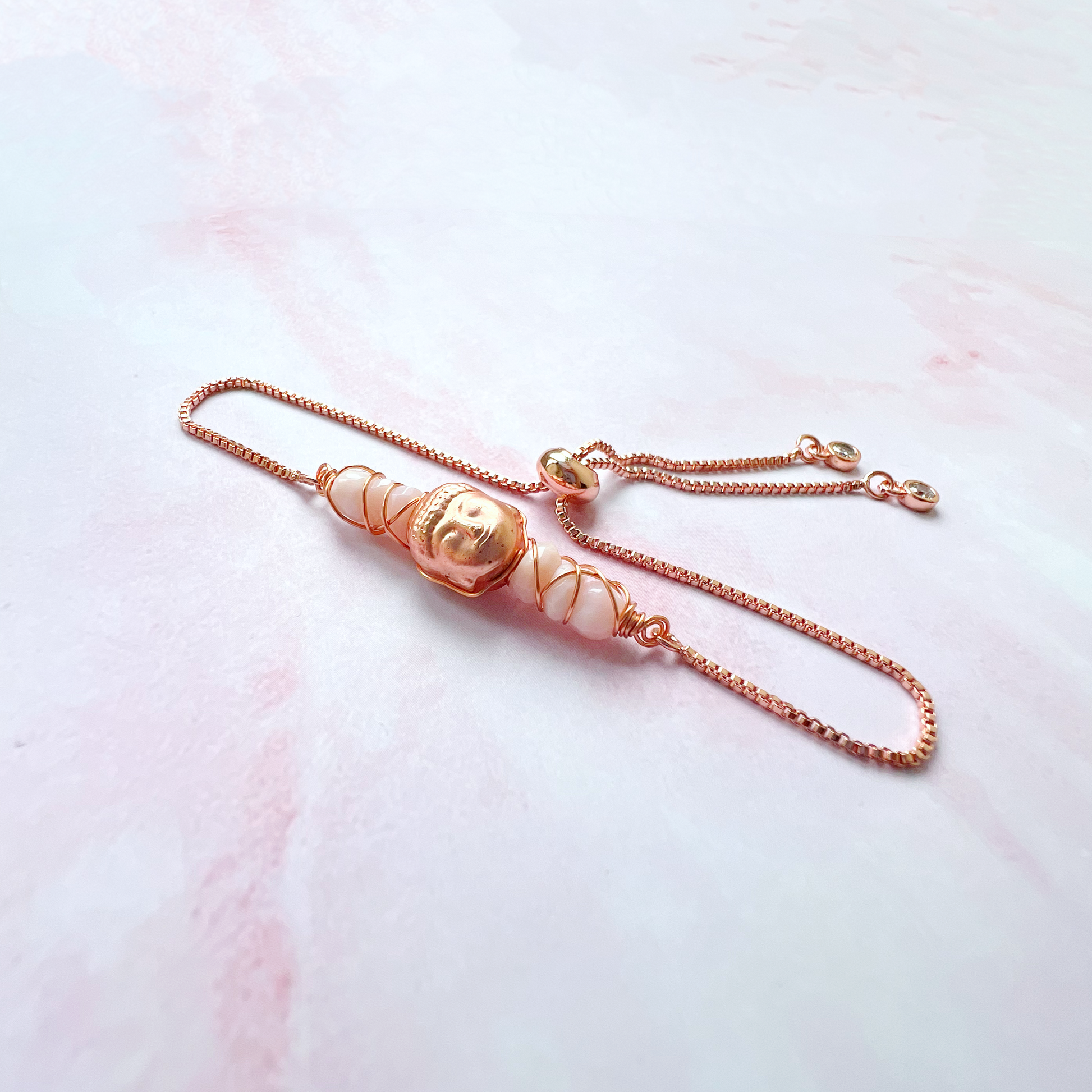 Beautiful Pink Opal bracelets with a 14k rose gold plated slider.