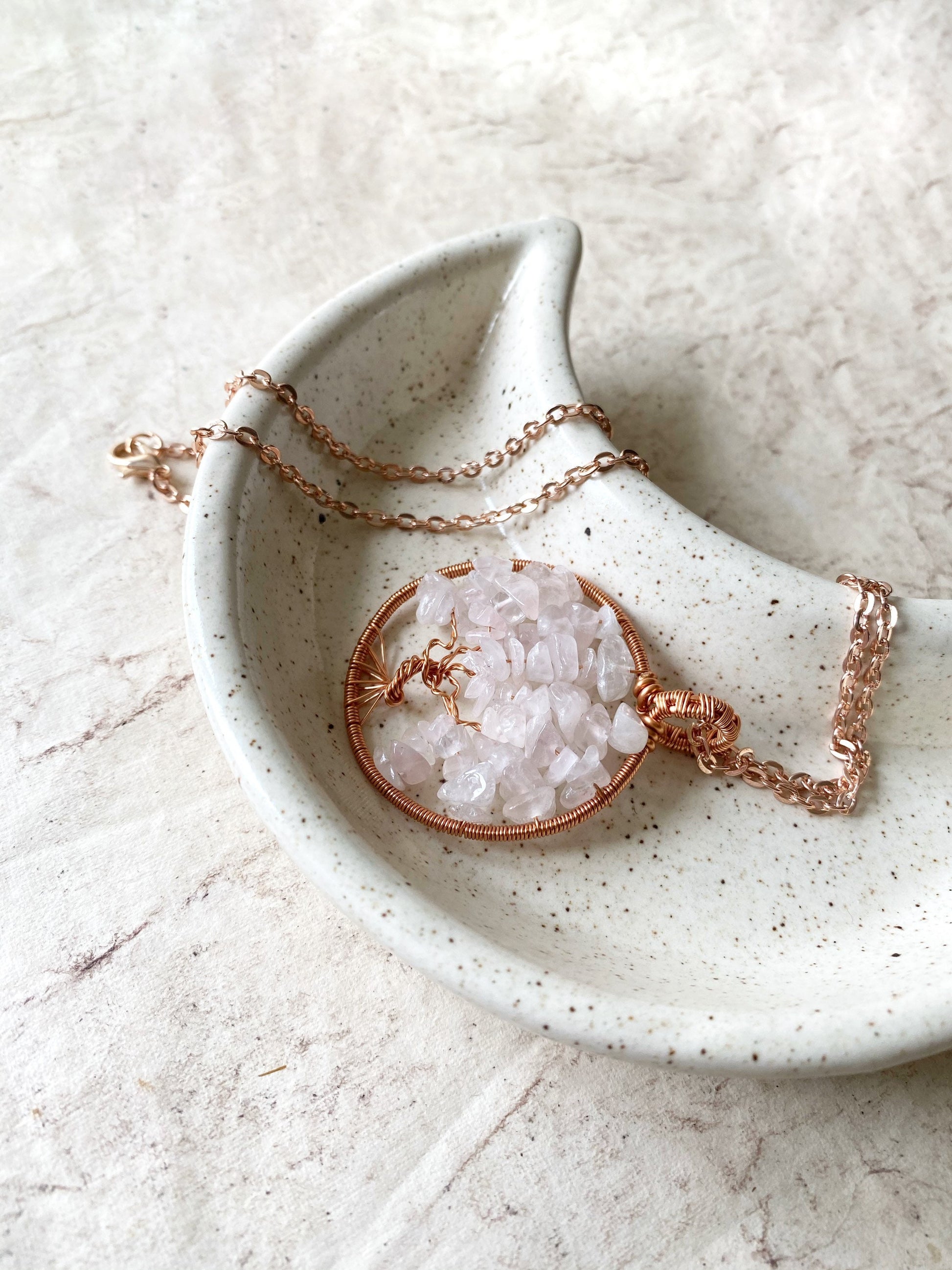 Rose Quartz Tree of Life Necklace, Self Love Jewellery, Pink Quartz Jewellery, Crystal Healing Necklace, Anahata Heart Chakra Meditation