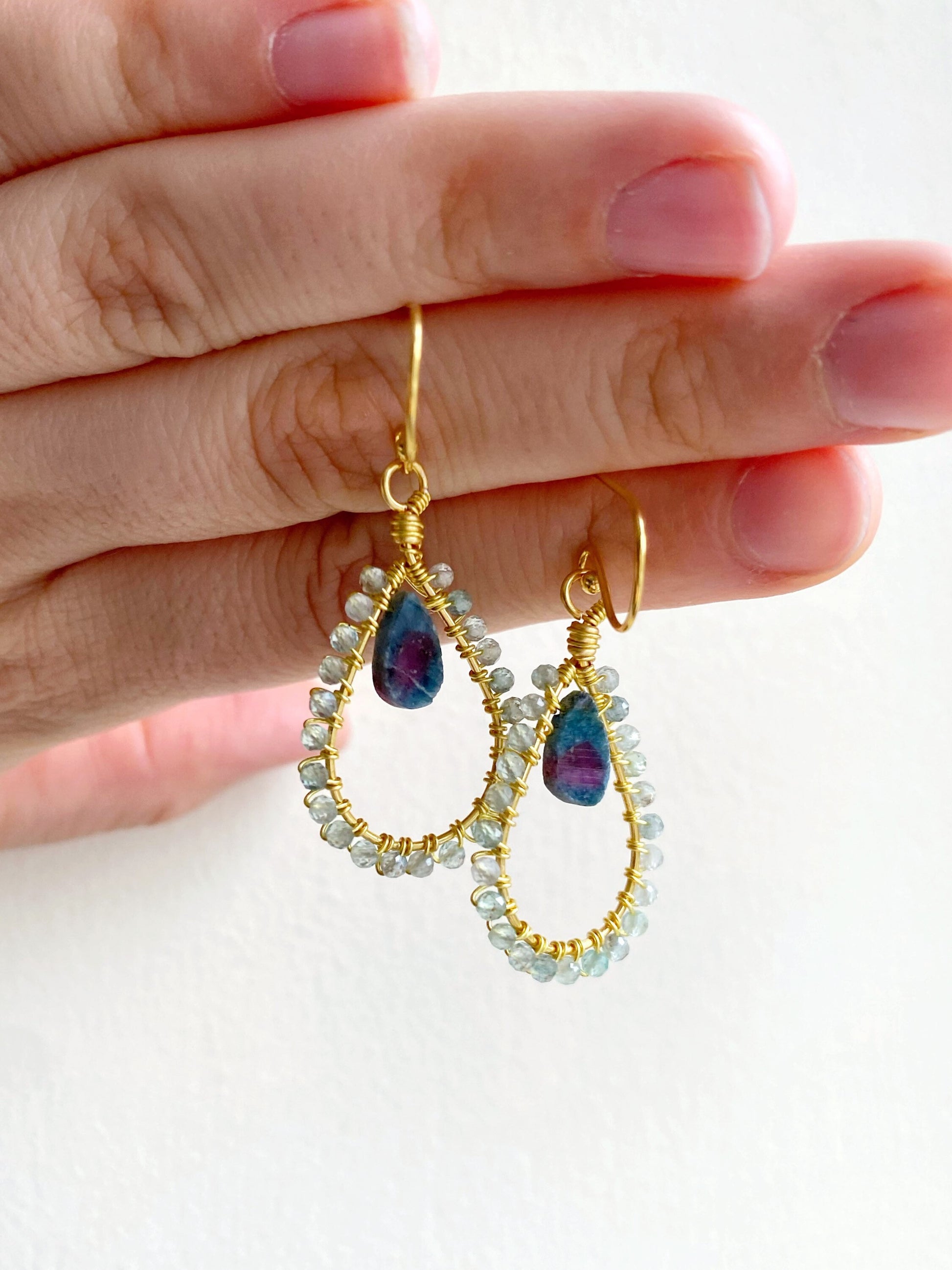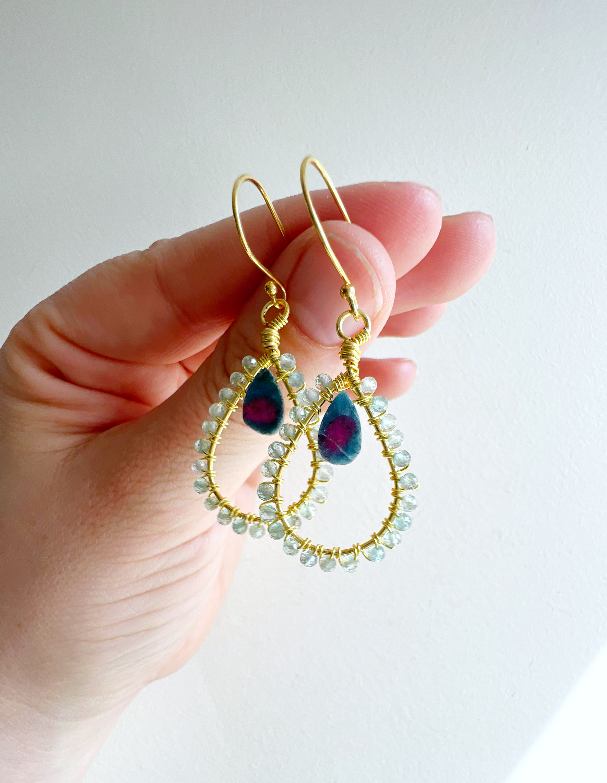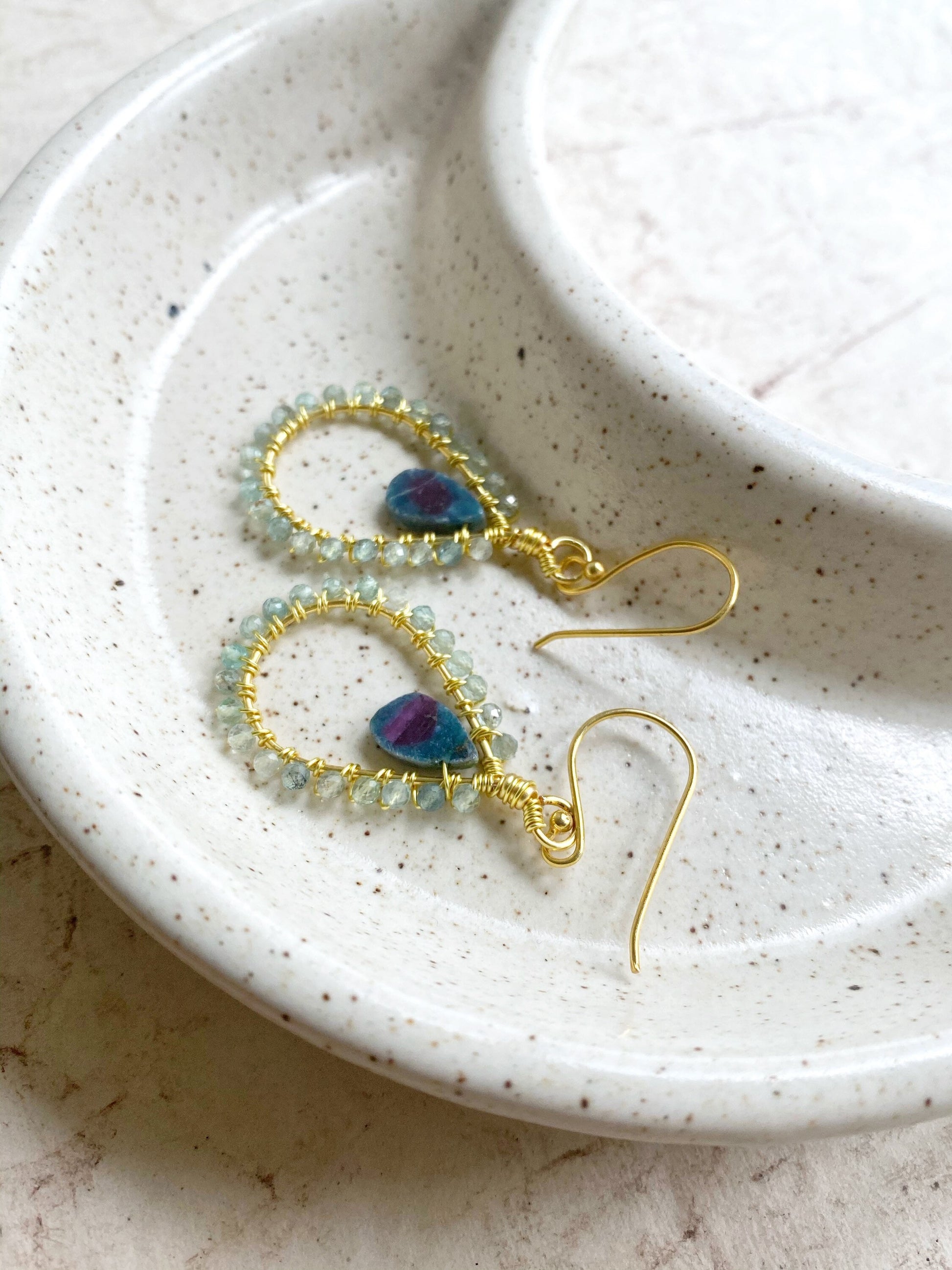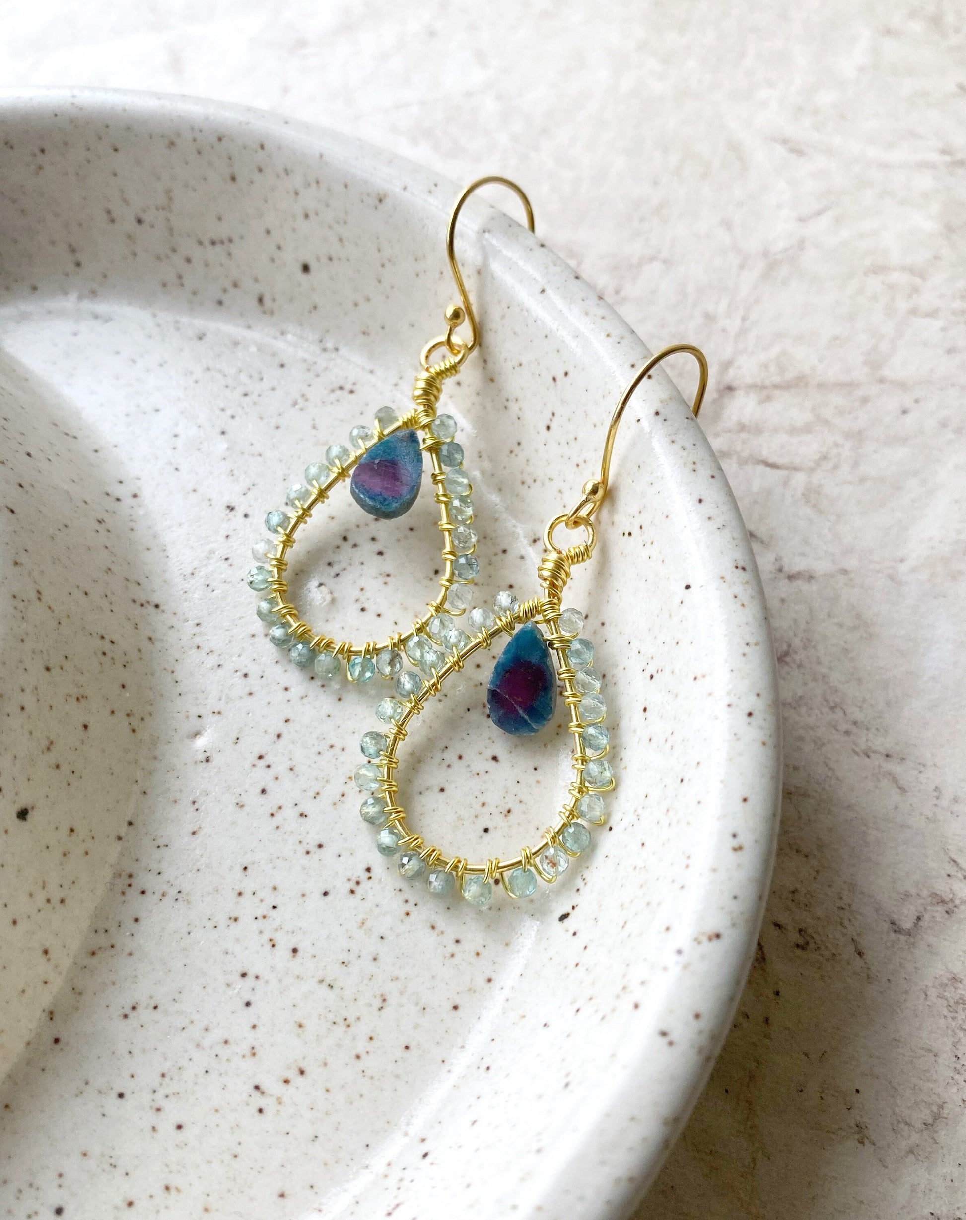 The ruby in fuschite gemstone pears have beautiful natural inclusions and the apatite is so sparkly with the gold.