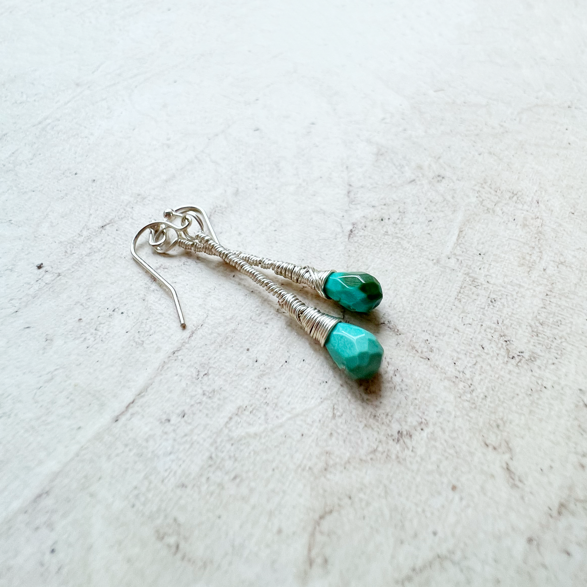 Gorgeous natural Turquoise earrings with delicate silver colour wire work.