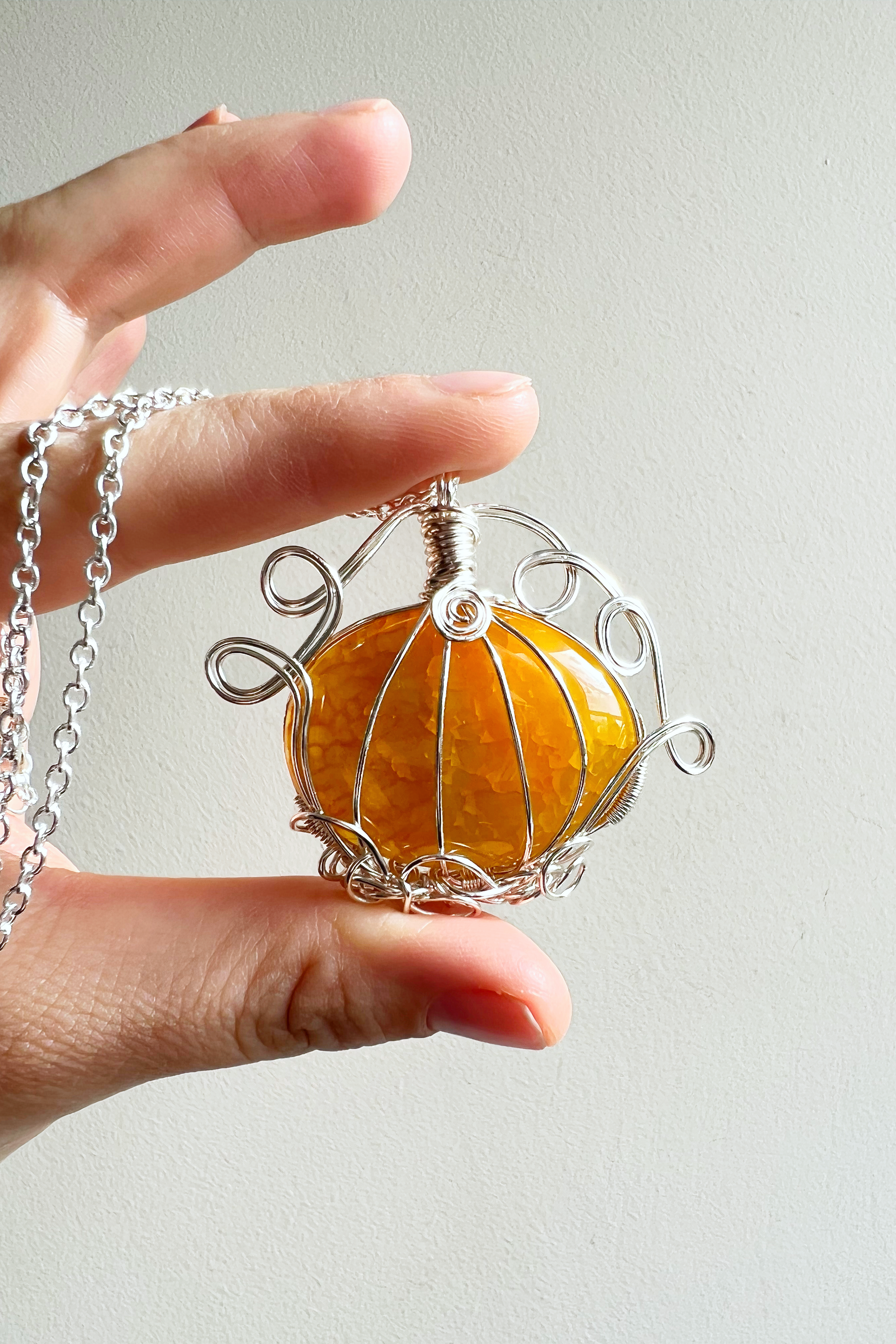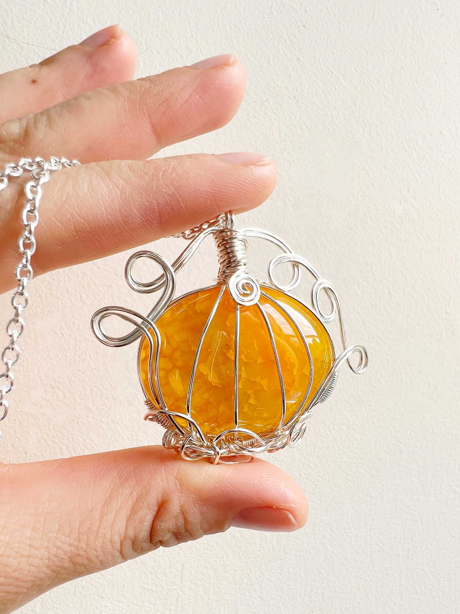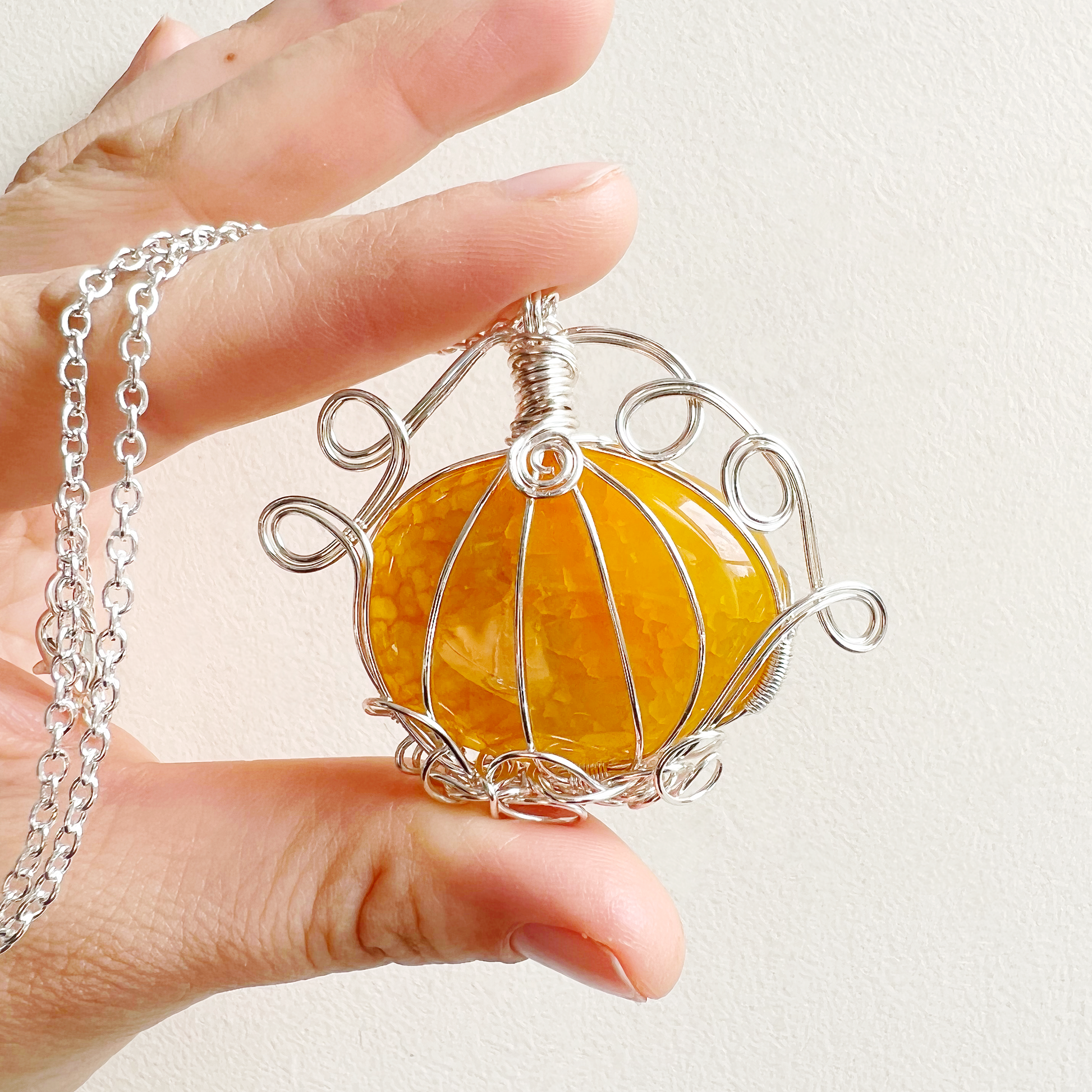 Add a zing in your step with this gorgeous yellow/orange dragons vein agate pumpkin necklace!